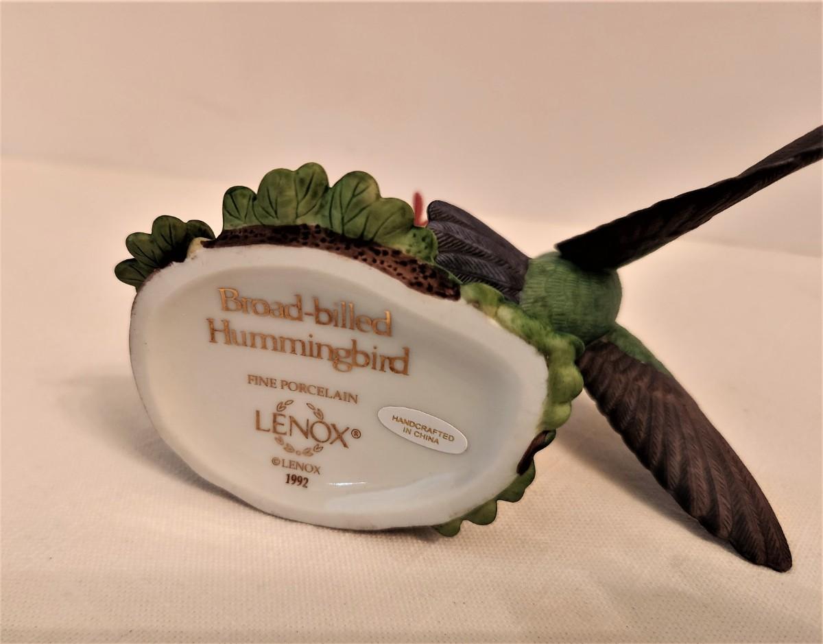 Lot of 2 Lefton & Lenox bisque porcelain hummingbird figurines, both in good condition - no box. Lefton is 6" tall and dated 1998 - Lenox is 4.5" tall and dated 1992 (labeled Broad Billed Hummingbird).