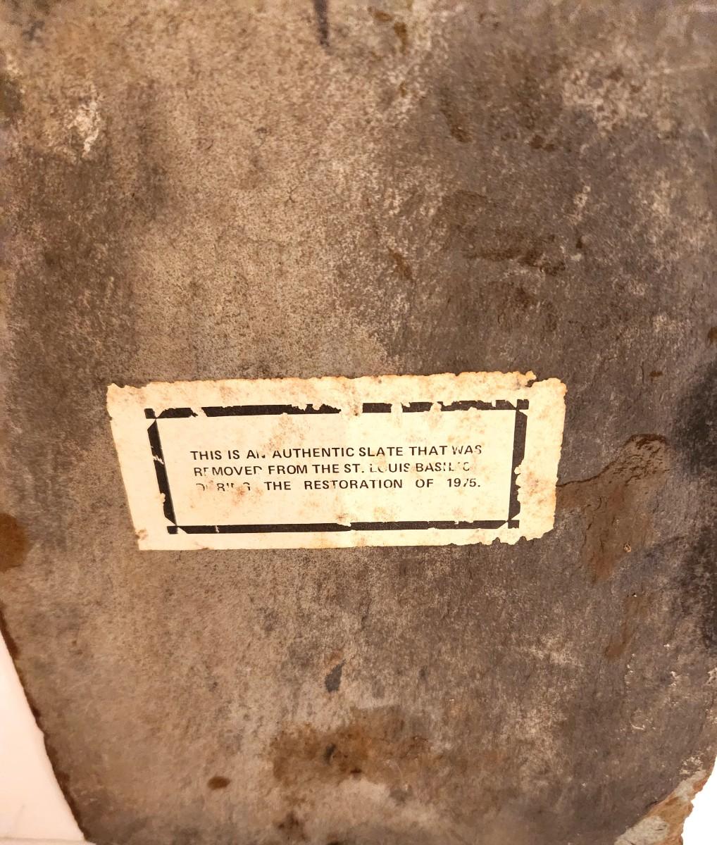 20" x 8" Antique Roof slate from the 1975 restoration of the St. Louis Cathedral - New Orleans streetcar painted scene. Good antique condition - not cracked.