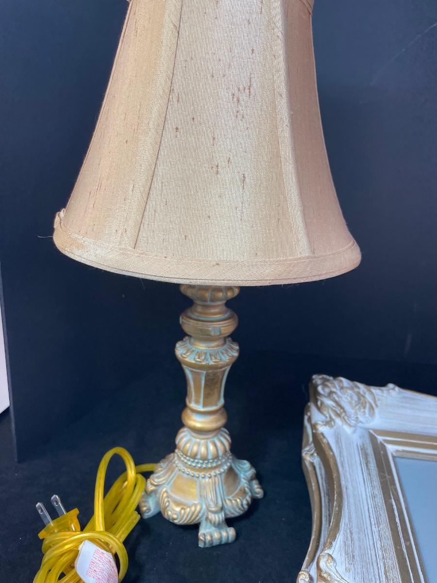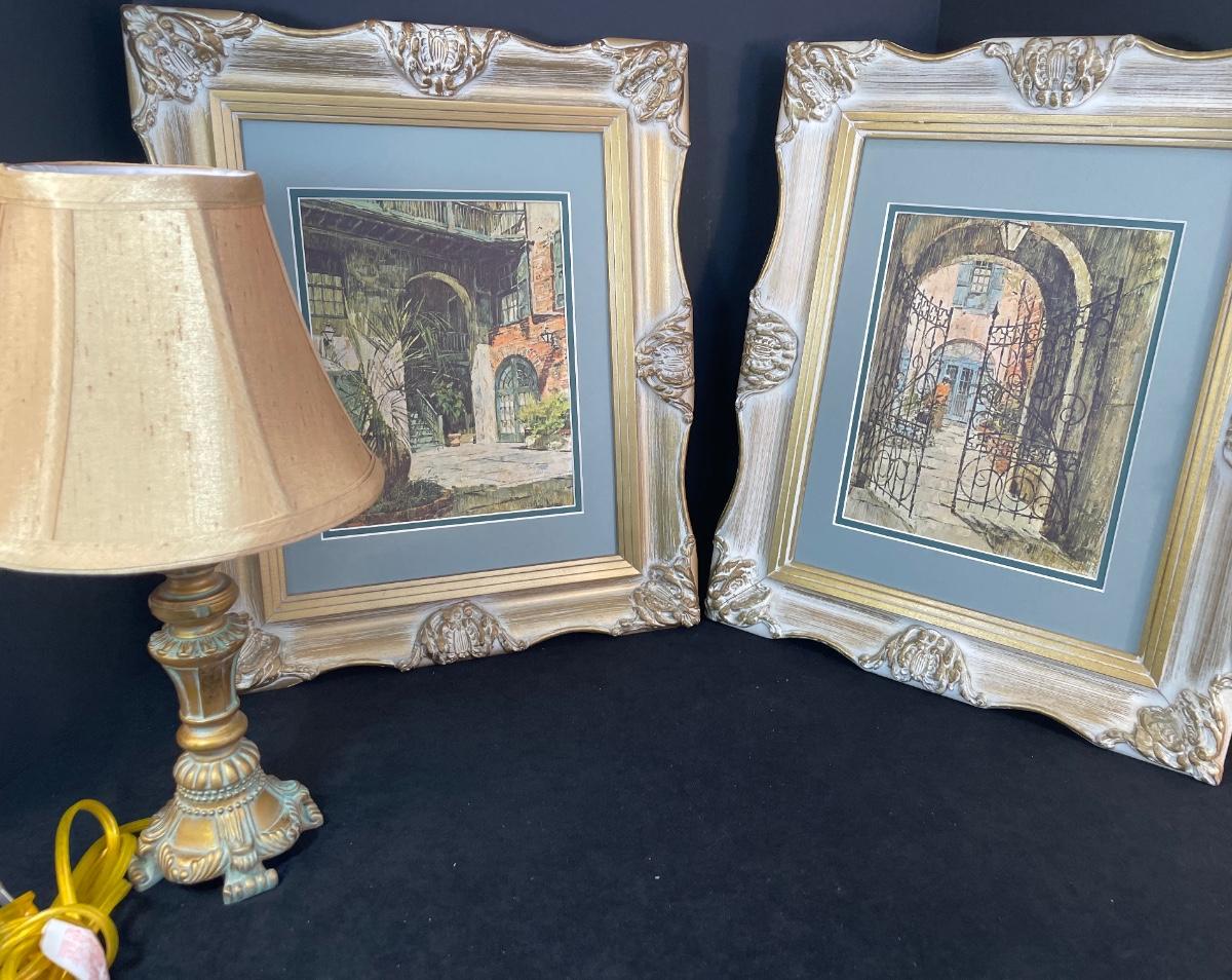 Lot 16. Pair of Framed Prints and a Small Lamp