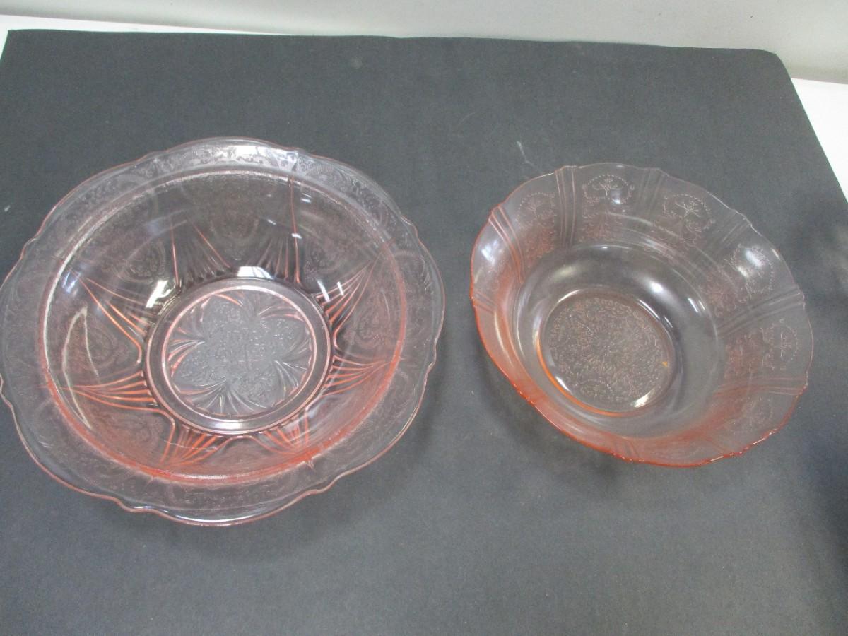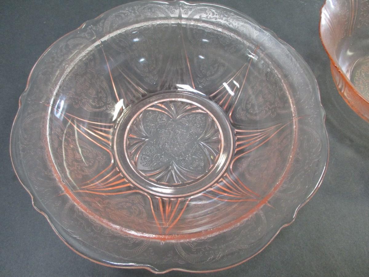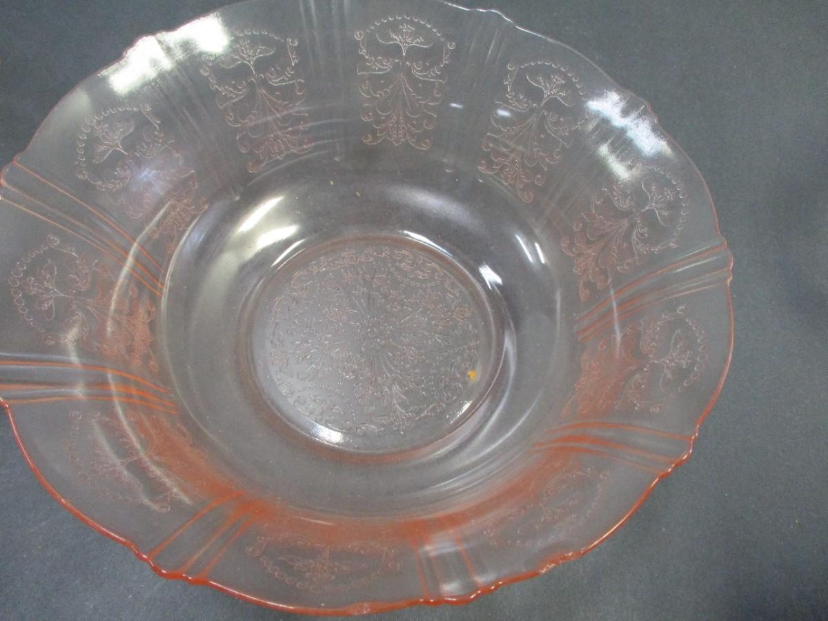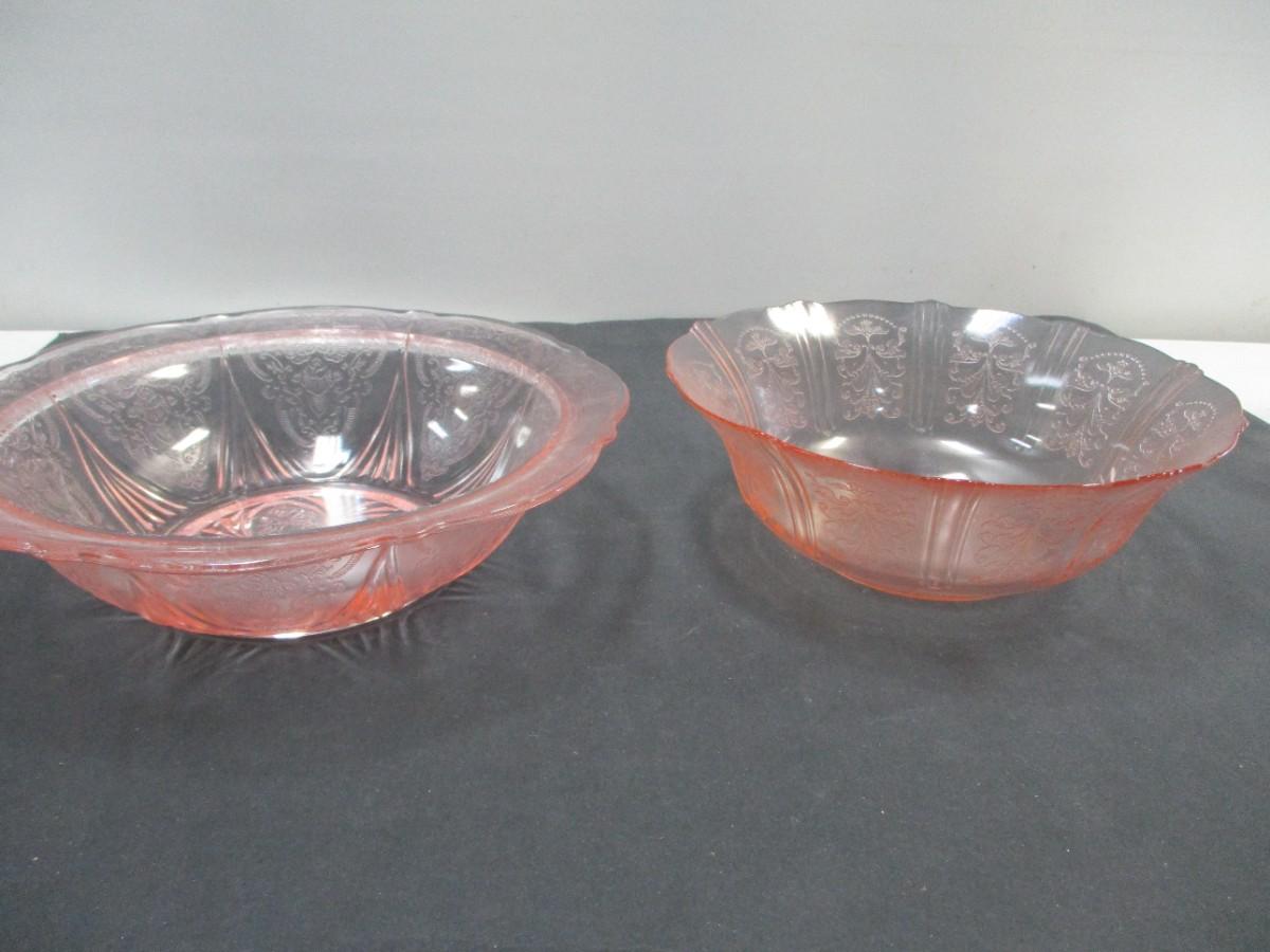 Lot 16 - Pink Crystal Etched Glass Dishes