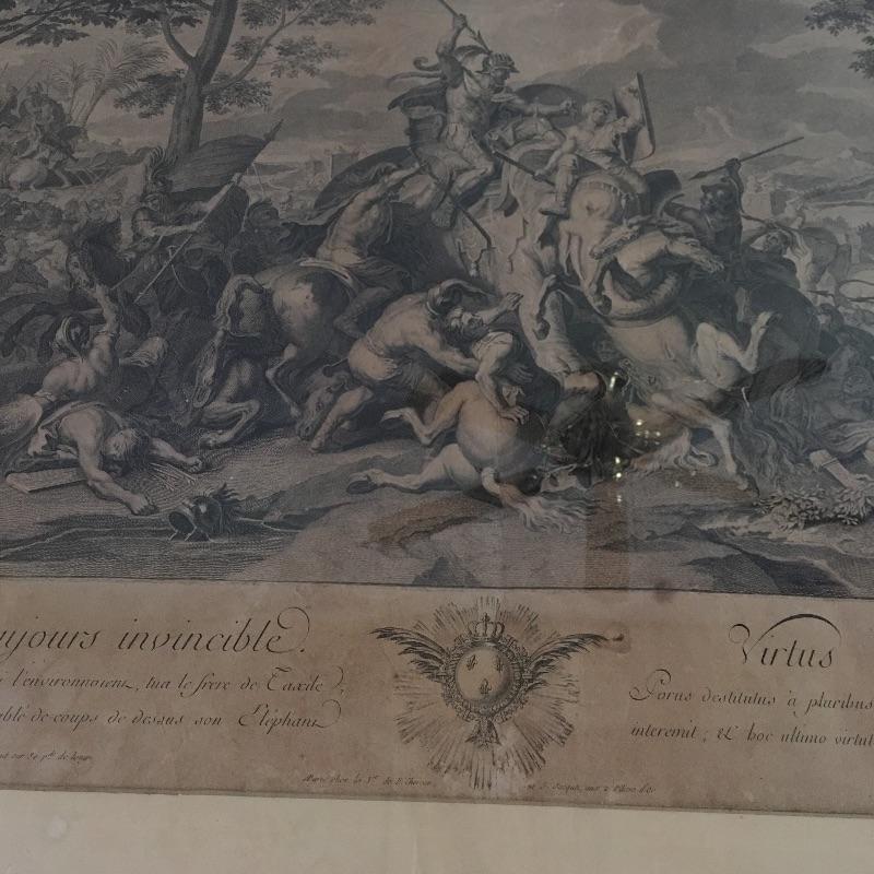 Porus In battle framed print. Captivating print of Porus in battle depicting the horrors of war.