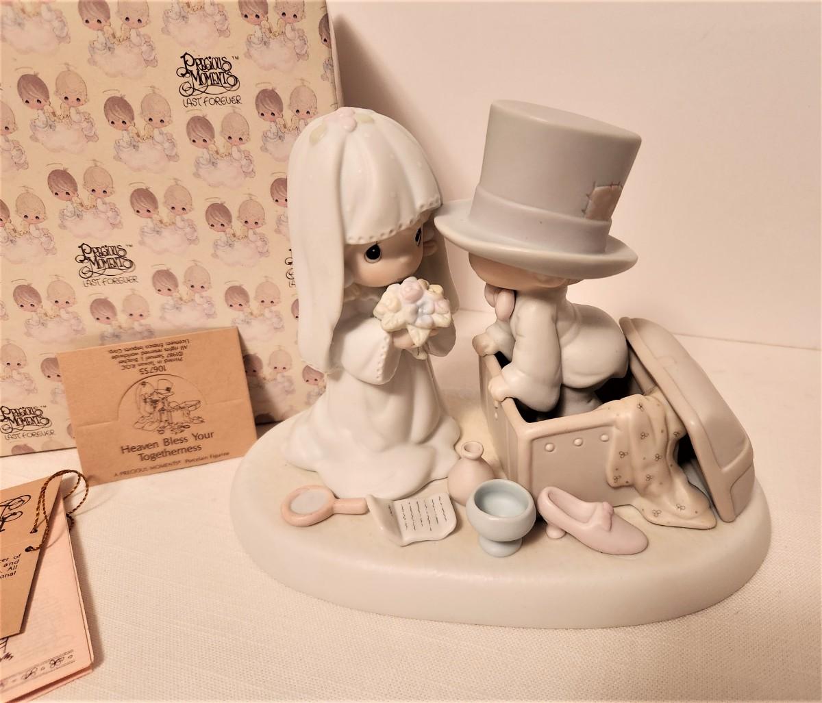 Precious Moments figurine, Bride and Groom - "Heaven Bless Your Togetherness" - comes with box and papers. Design #106755, 1987 - original price of 75.00. Good condition.