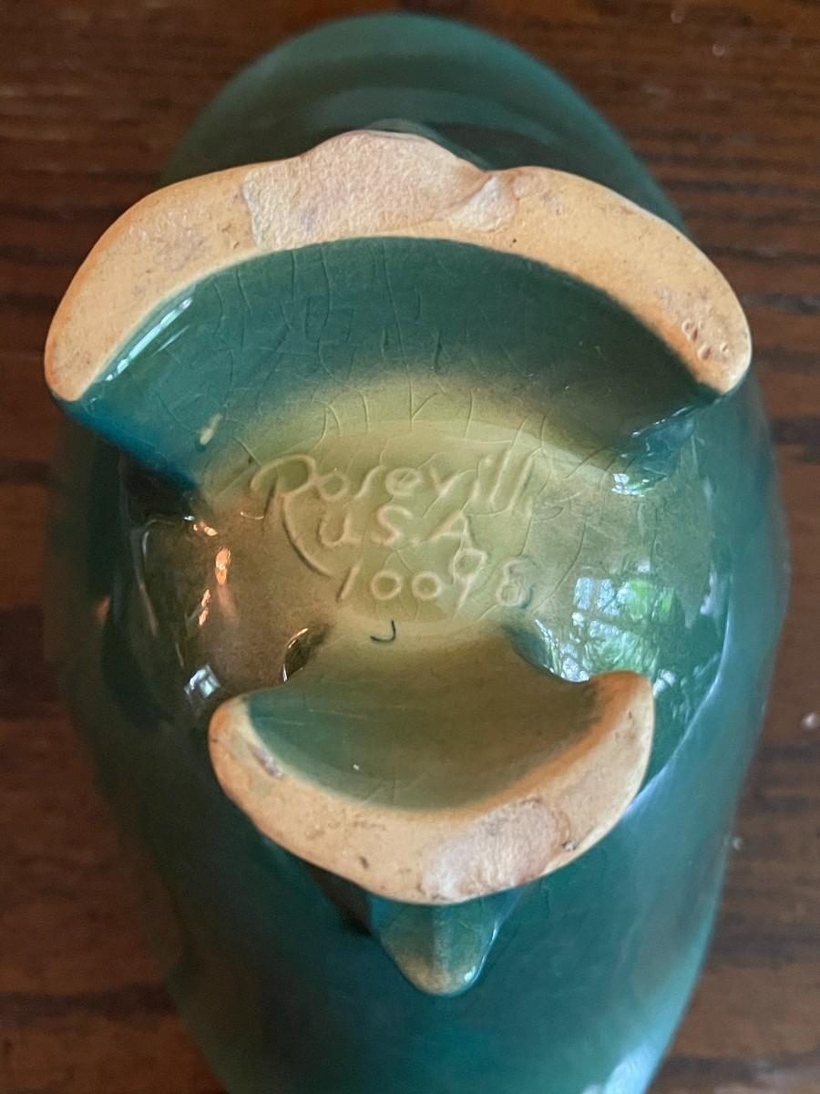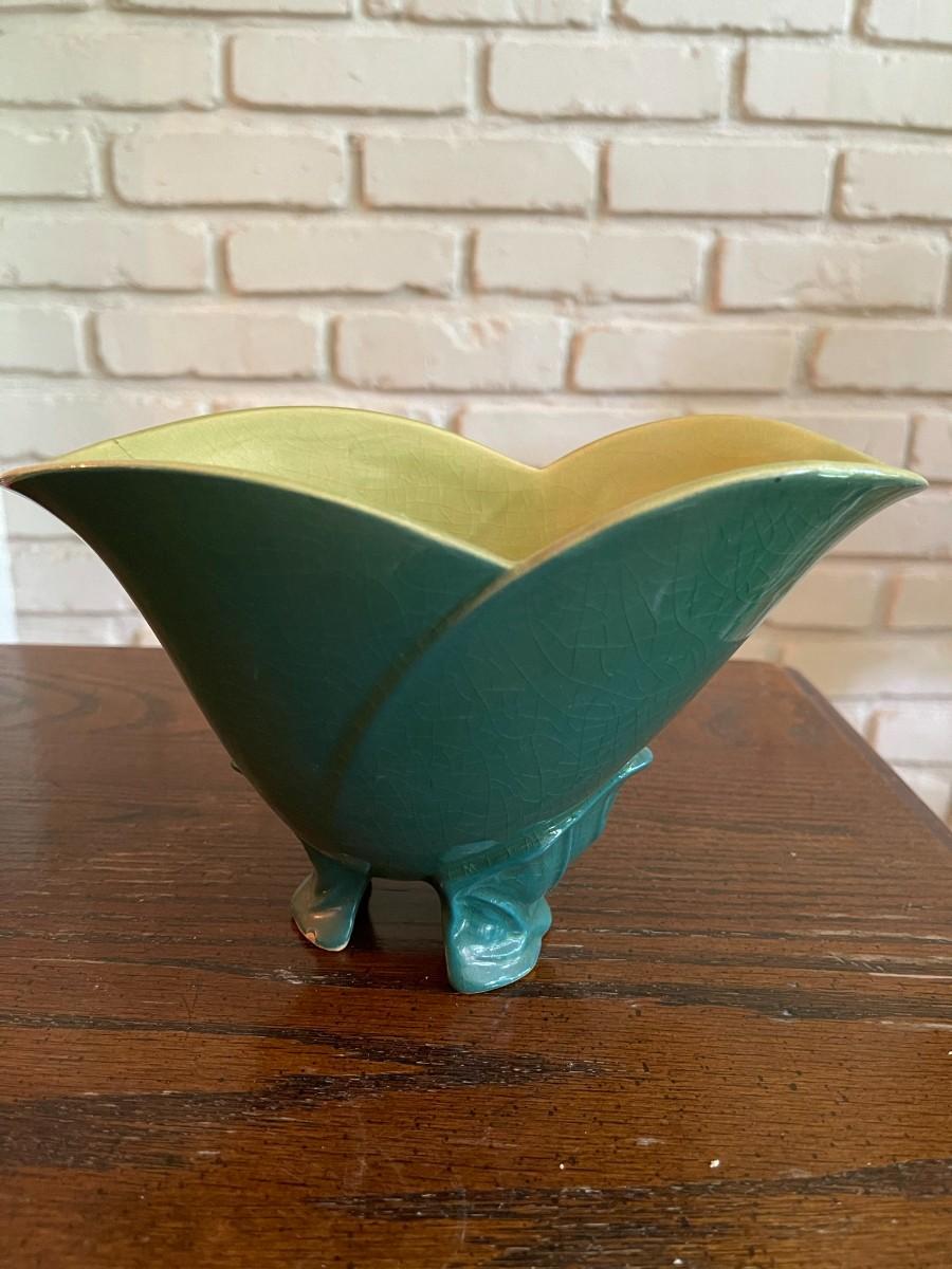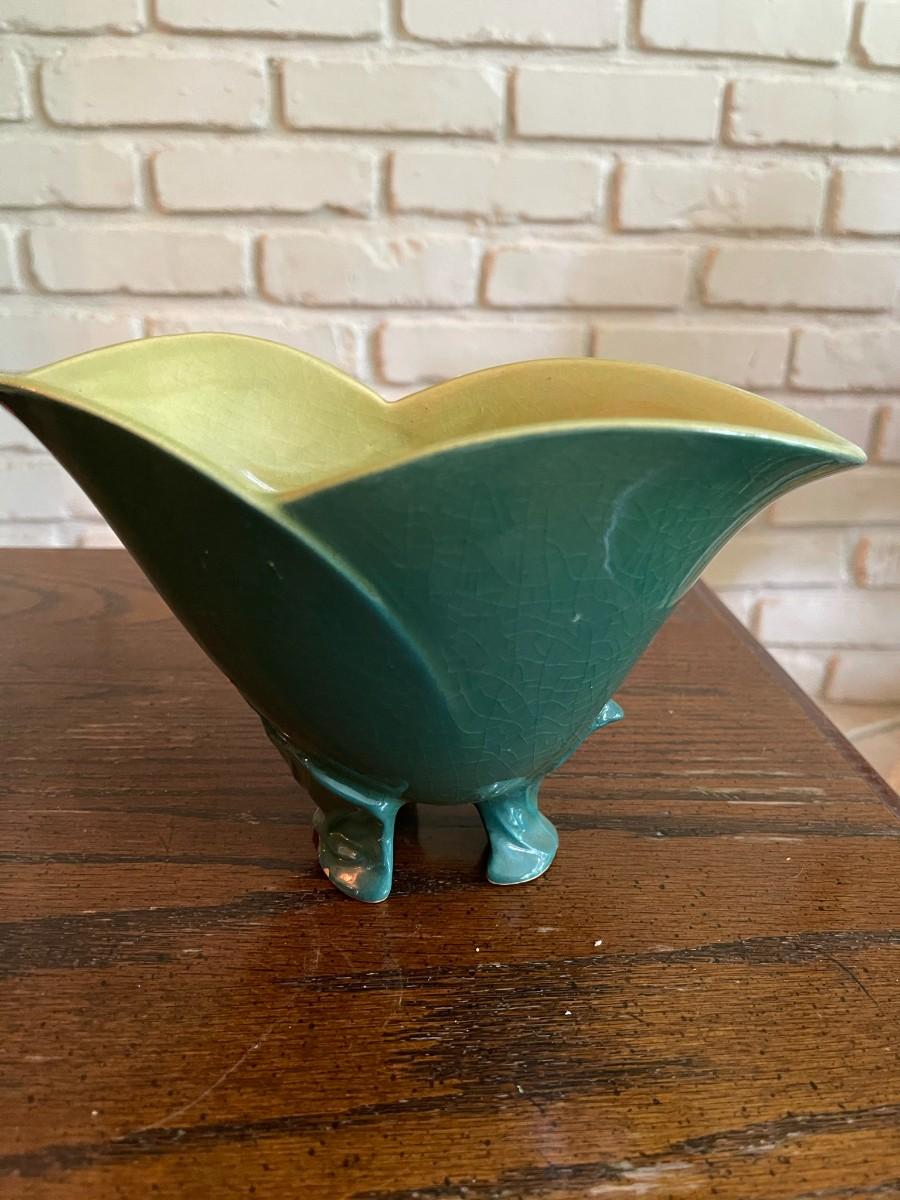 Vintage Roseville Pottery, Mayfair Footed Bowl, 1009-8, High gloss dark green and light green glazes.