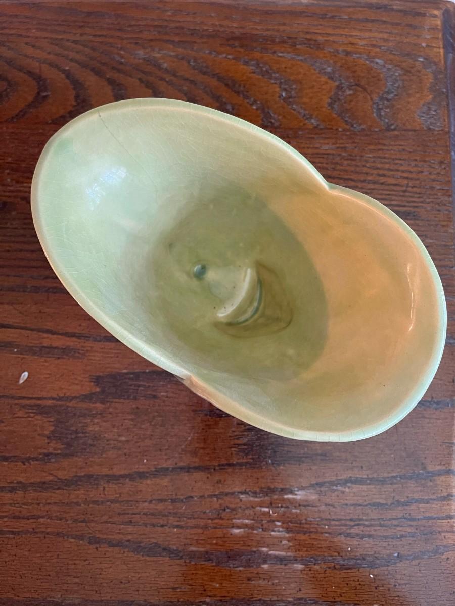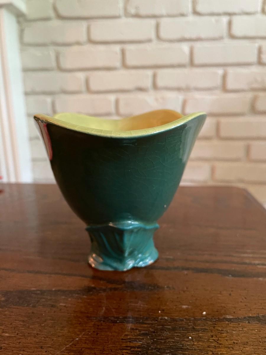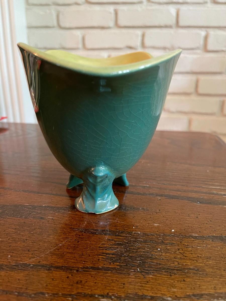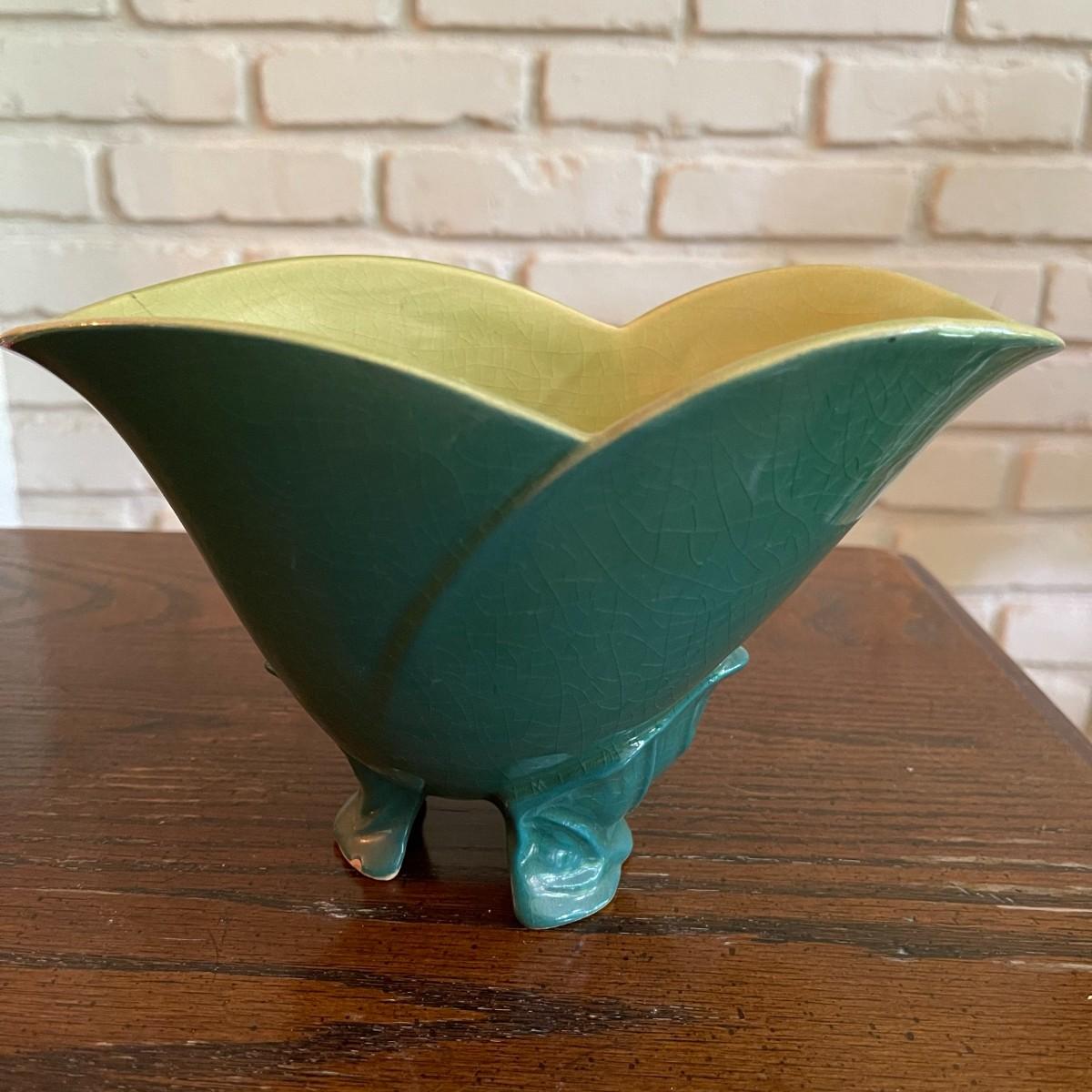 Vintage Roseville Pottery, Mayfair Footed Bowl, 1009-8, High gloss dark green and light green glazes.