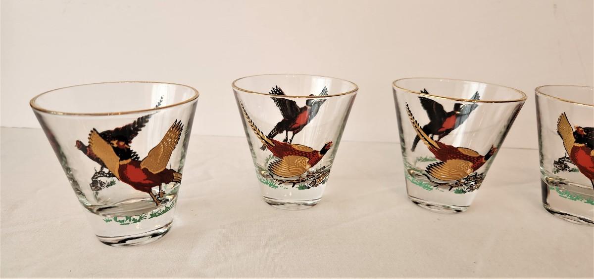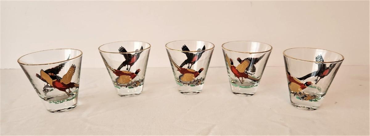 Lot #16 Set of 5 Mid Century Liqueur Glasses - Pheasants