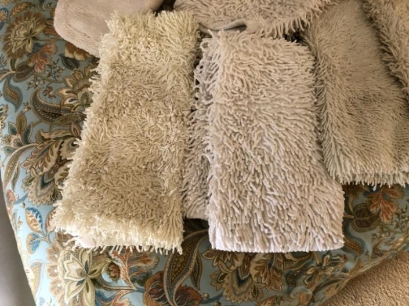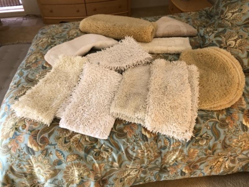 Lot 16. Ten bath mats (cream and white) (assorted sizes) (some new)--WAS $30““NOW $15