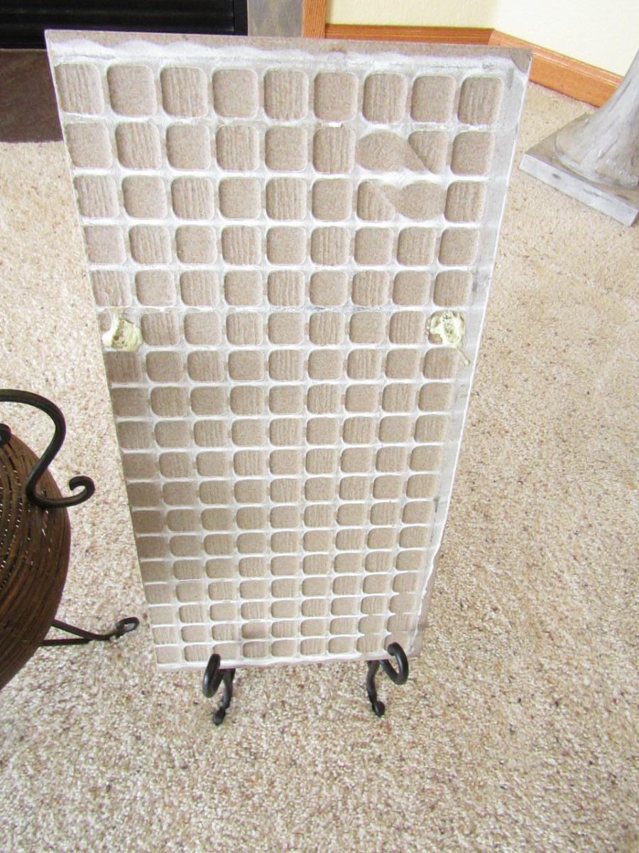 THE TILE MEASURES 17.5" X 9" AND INCLUDES AN IRON STAND