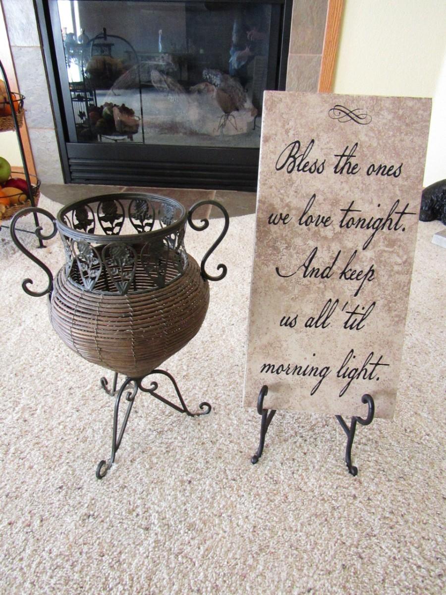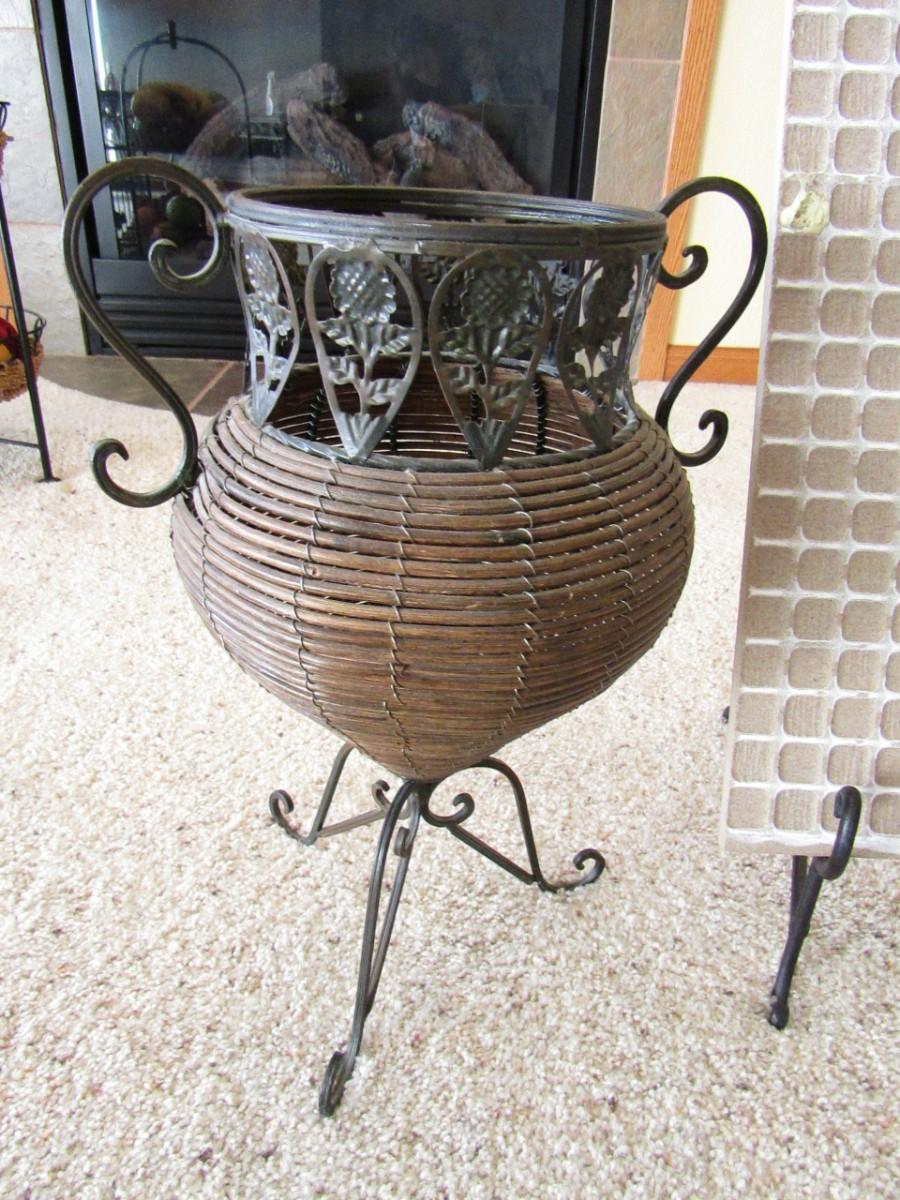 LOT 16 TILED QUOTE AND WICKER WITH IRON POT