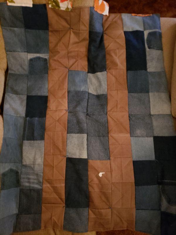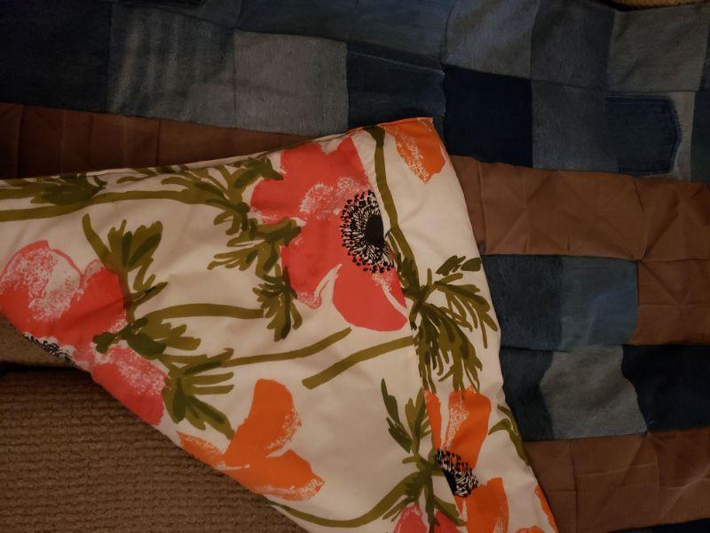 Vintage Denim Patchwork Quilted Curtain with some tan Corduroy patches too.