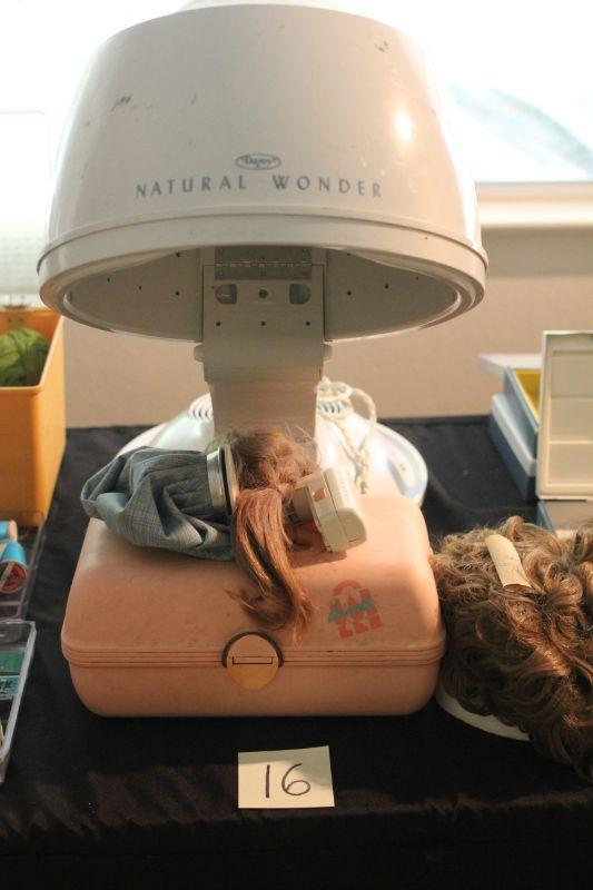Lot 16 Vintage Hair Dryer, Wigs, Cosmetic Box & Others
