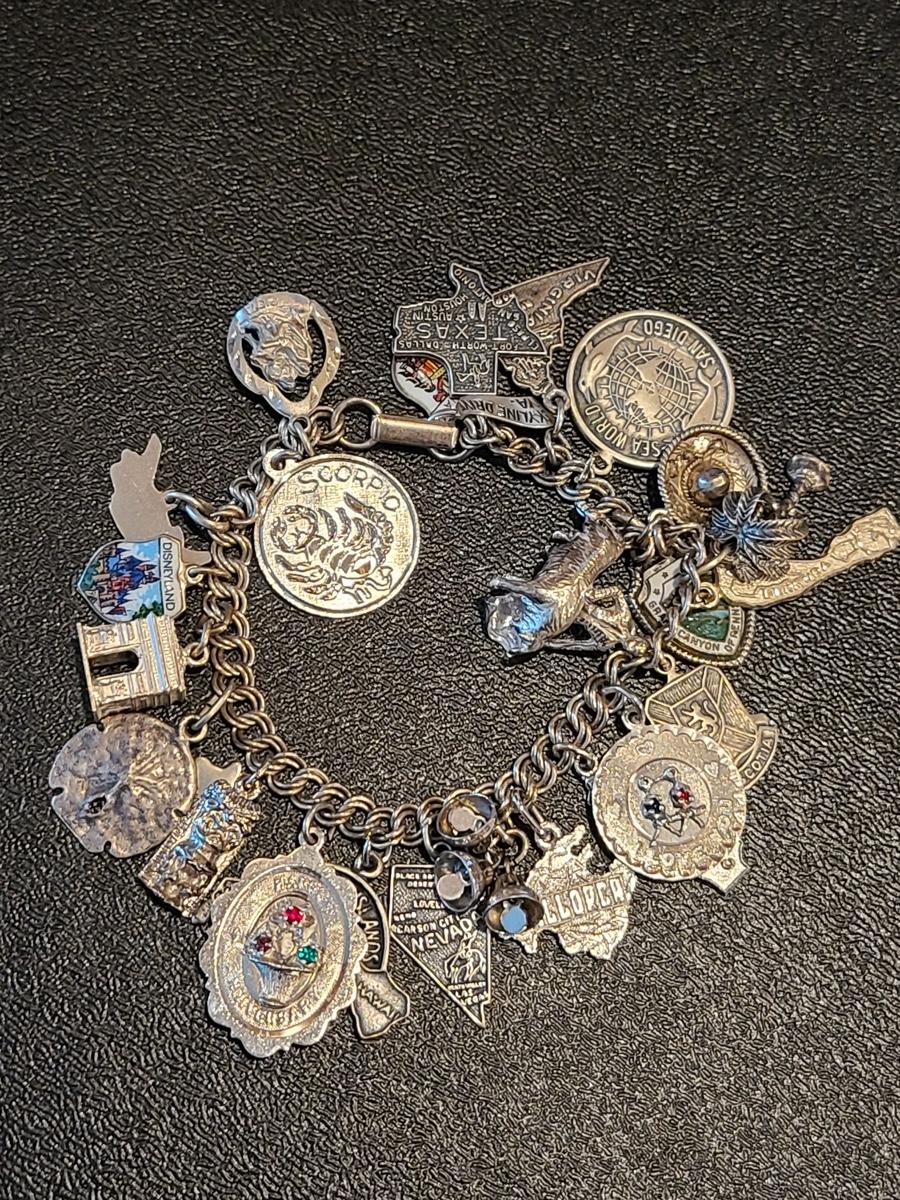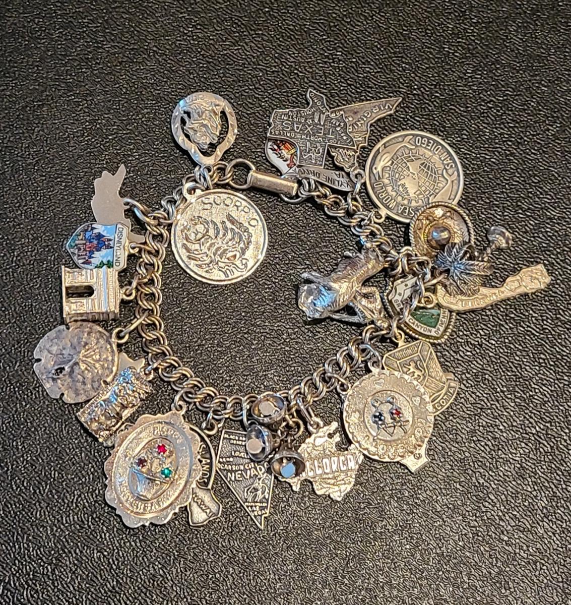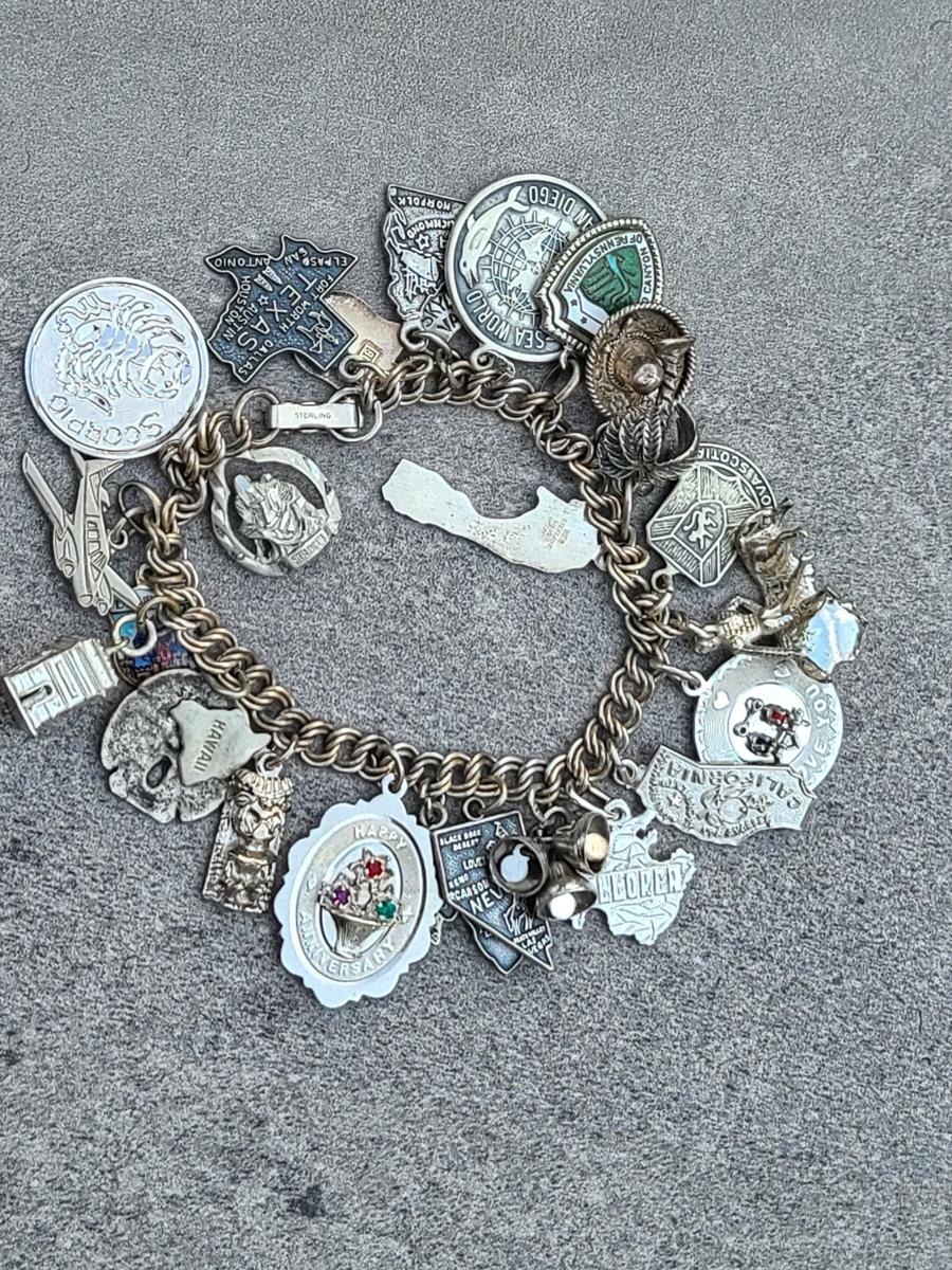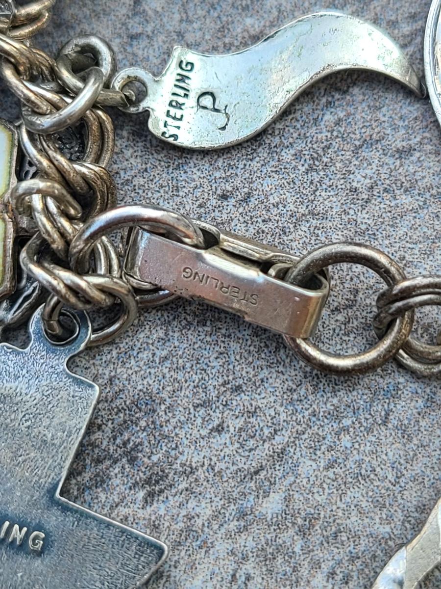 This weighs 57 grams in total weight including a couple of non sterling charms. Fun vintage sterling bracelet with mostly sterling charms. Please see all pictures as they are the best representation of the items. The pictures show condition, measurements if taken, and what is included in the lot. Due to the large amount that we photograph and the time frame, we are not always able to take measurements. All items unless noted, are pre-owned and have been used. If you purchased furniture, you must bring help. We do not allow one person to carry large furniture out on their own. Bring help, tools and a truck for the safety of our client’s homes, and your personal safety. Company policy. Thank you.