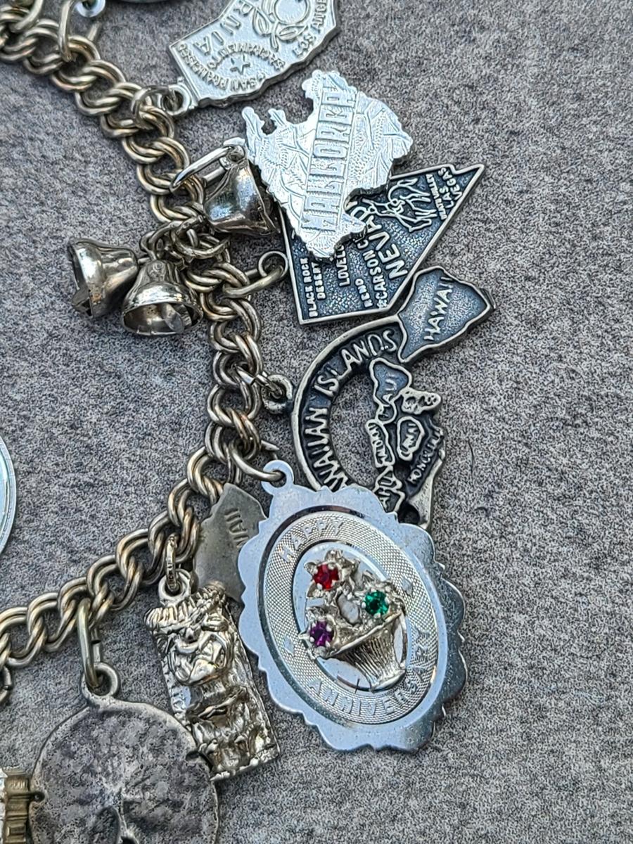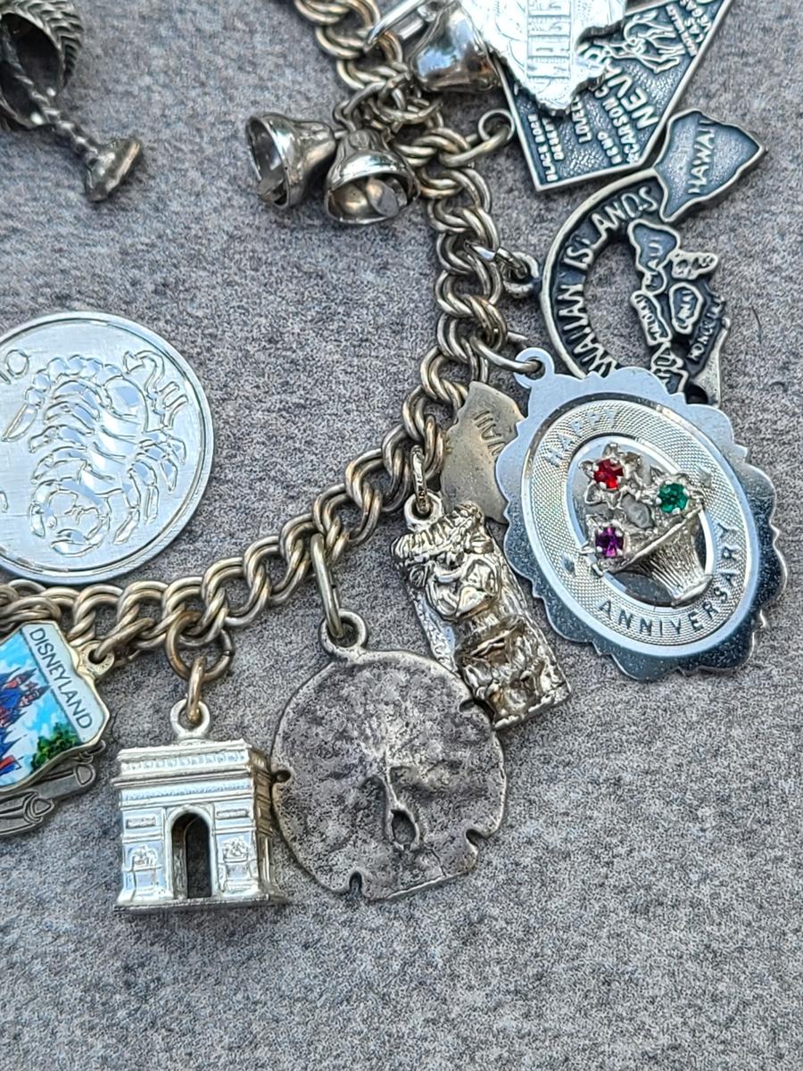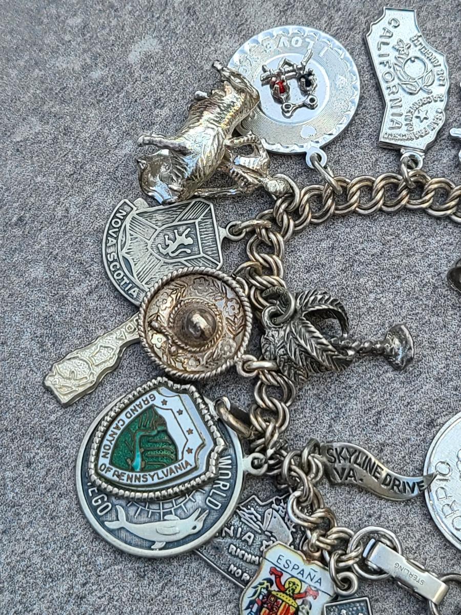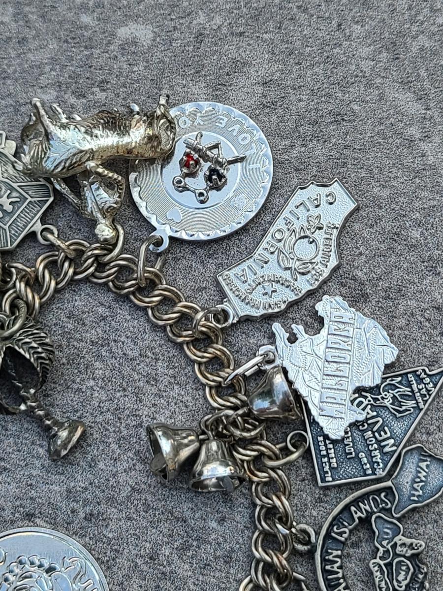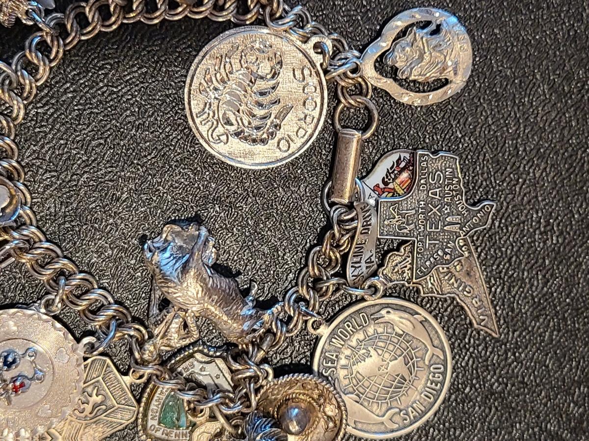 This weighs 57 grams in total weight including a couple of non sterling charms. Fun vintage sterling bracelet with mostly sterling charms. Please see all pictures as they are the best representation of the items. The pictures show condition, measurements if taken, and what is included in the lot. Due to the large amount that we photograph and the time frame, we are not always able to take measurements. All items unless noted, are pre-owned and have been used. If you purchased furniture, you must bring help. We do not allow one person to carry large furniture out on their own. Bring help, tools and a truck for the safety of our client’s homes, and your personal safety. Company policy. Thank you.