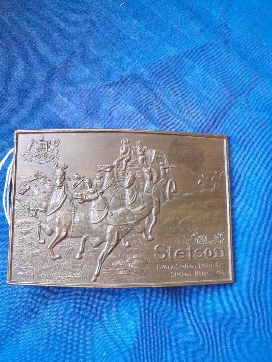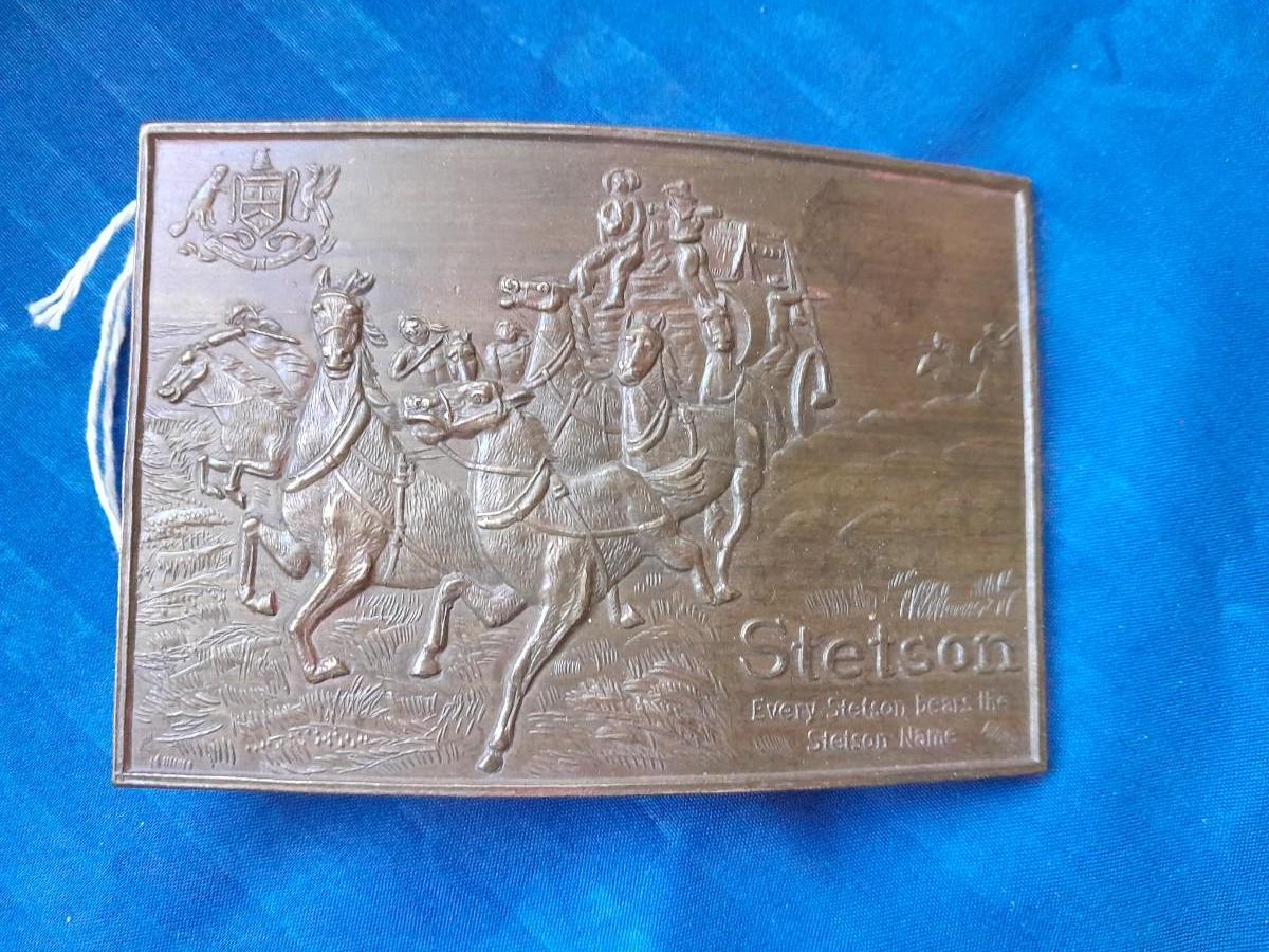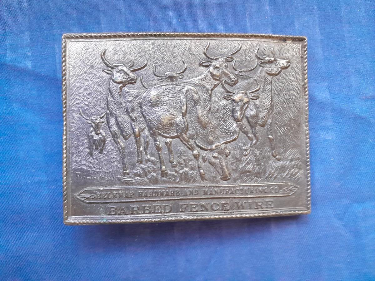 WESTERN COWBOY BELT BUCKLES BRASS STETSON & BARRED FENCE WIRE