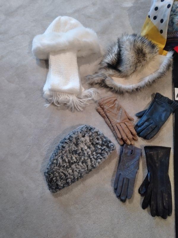 WOMEN'S WINTERWEAR, HATS, GLOVES, AND A SCARF _