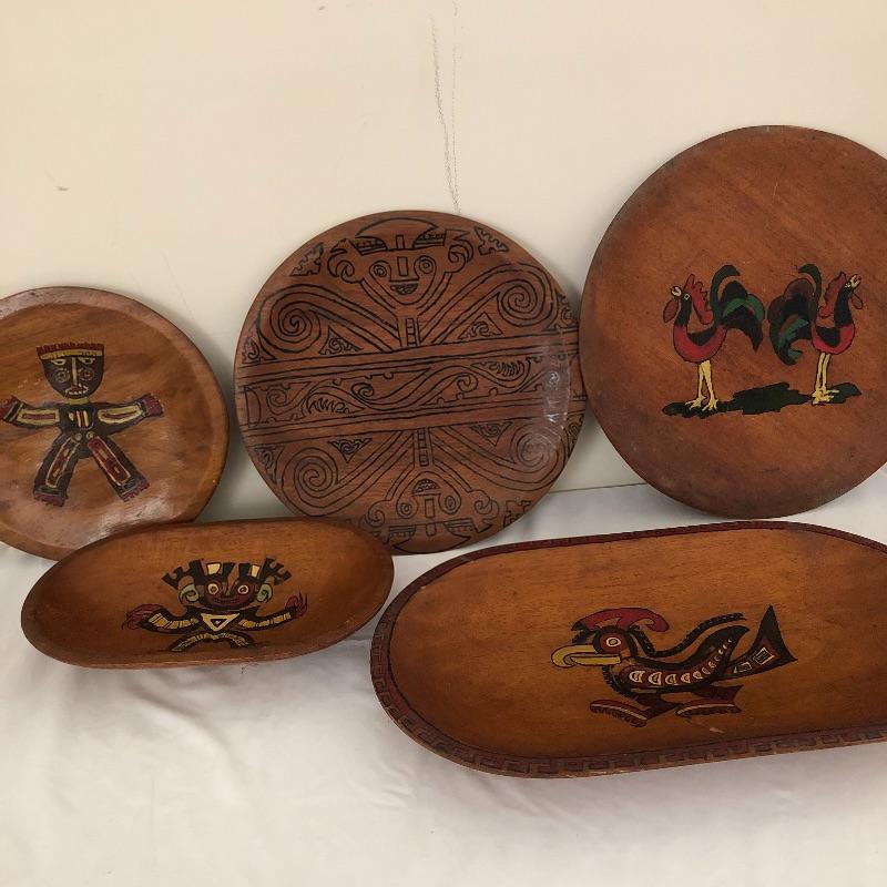 Entertain or decorate in style with this lot! Lot includes two platters and three plates. Note pictures for measurements. Shipping available.