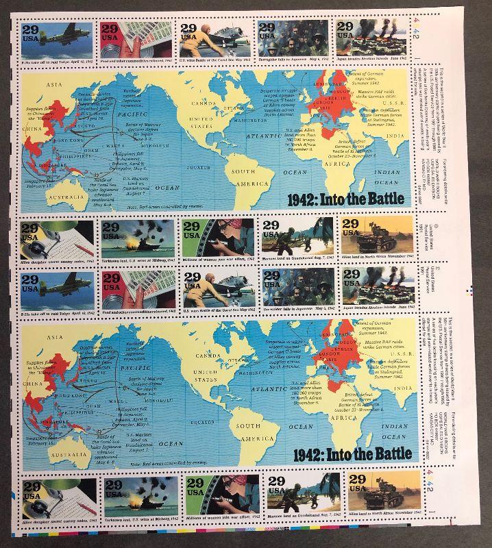 Lot # 160 1942 INTO BATTLE .29 CENTS STAMPS