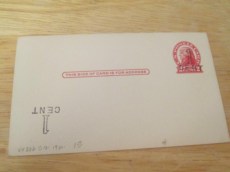 Lot # 160 - 2 - Overprint 1c/2c Thomas Jefferson Postal Card
