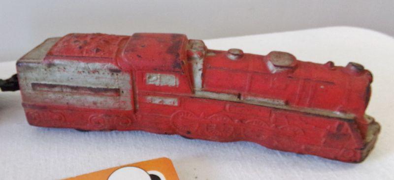PIC 3 - MADE FROM A POT METAL, MARKED "MADE IN USA #3", ITS HITCH IS BROKEN AND THE METAL HAS MELTED TOWARD THE BACK GIVING IT AN UNEVEN LOOK, GOOD CONDITION FOR ITS AGE