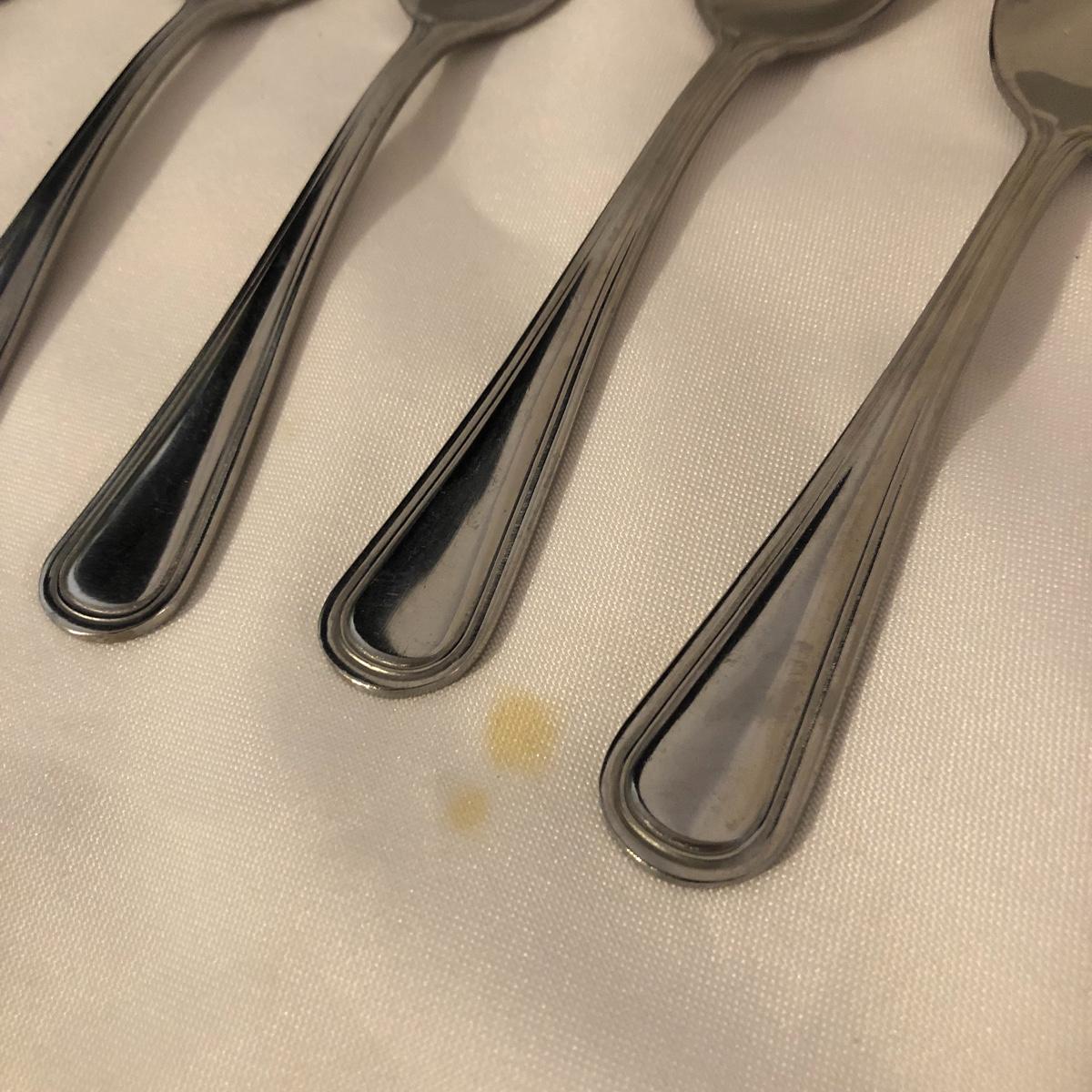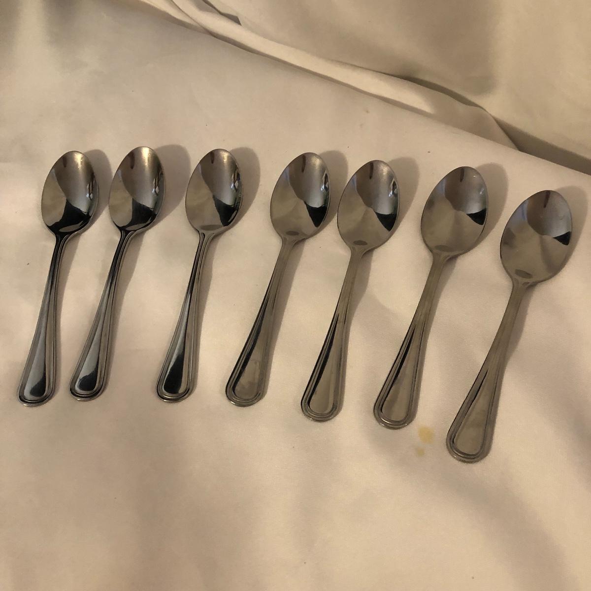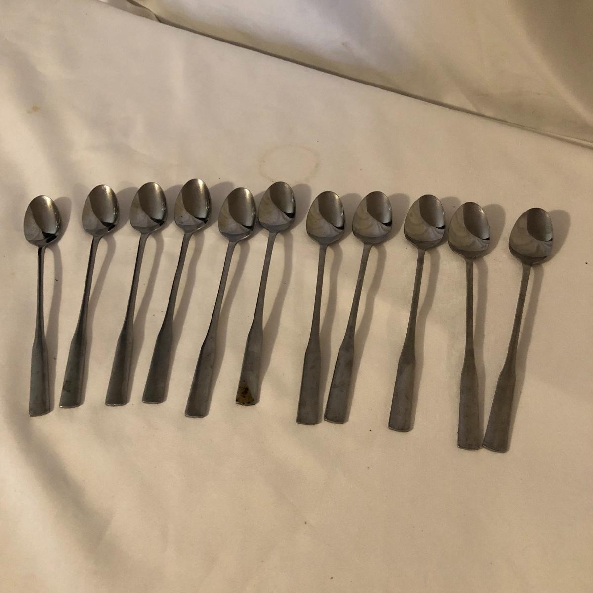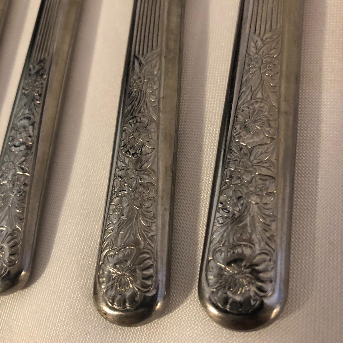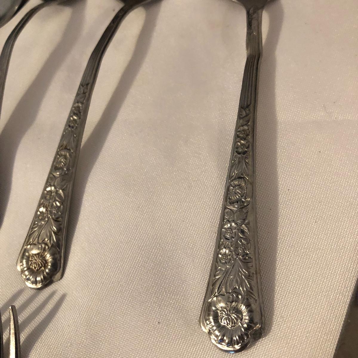This lot includes two sets of flatware: Debut Stainless and Update Stainless Flatware. The Debut flatware includes eleven knives, six dinner and salad forks, five soup spoons and two serving spoons. The Update Stainless Flatware includes (and is pictured last except the first picture shows two place settings together) : ten dinner forks, ten knives, nine soup spoons and seven spoons. Additionally, there are eleven tea spoons. S