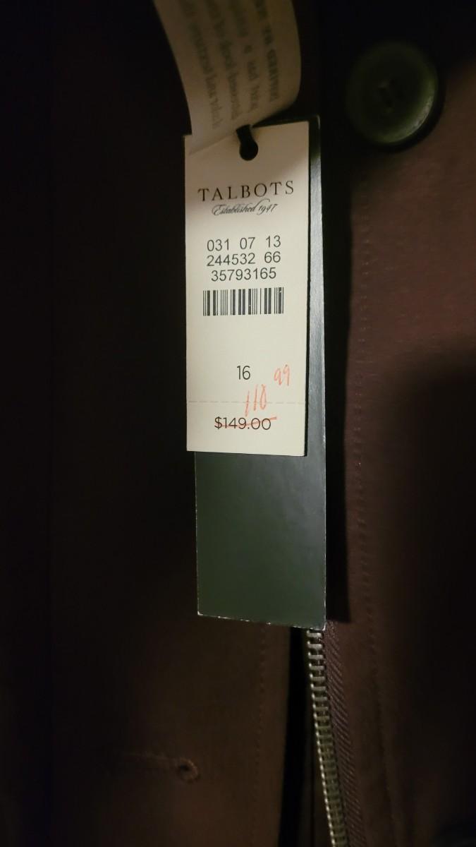 Lot 160: New with Tags Talbots Brown Corduroy Collar Jacket