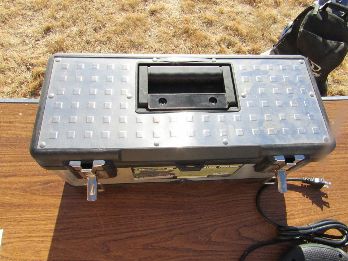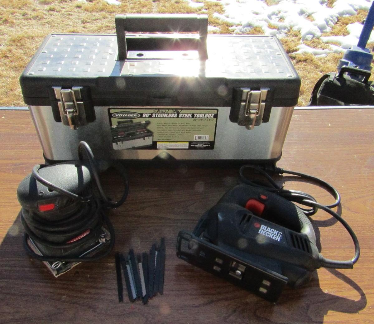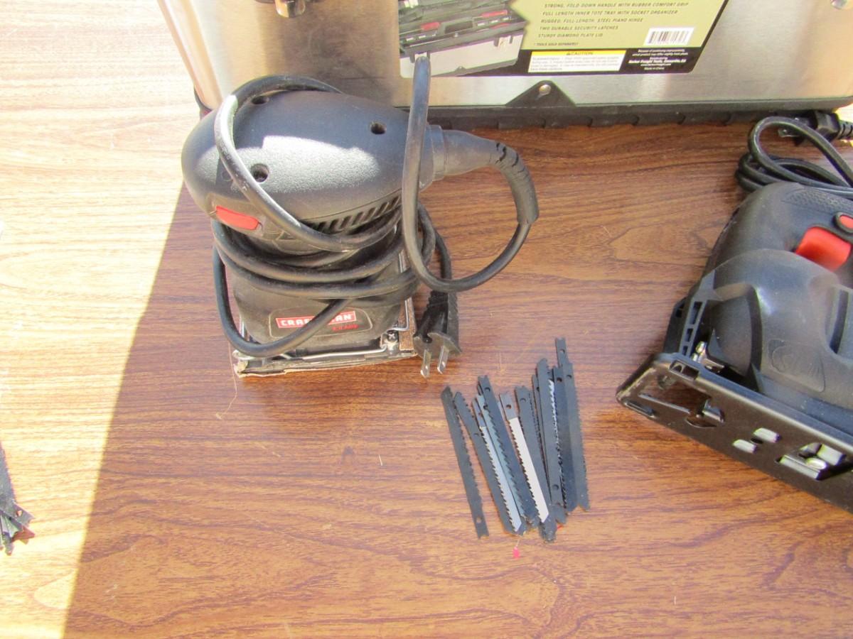 LOT 160 PALM SANDER, JIGSAW, STAINLESS STEEL TOOLBOX AND MORE