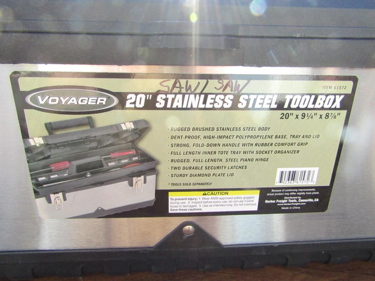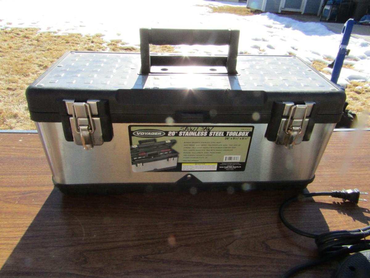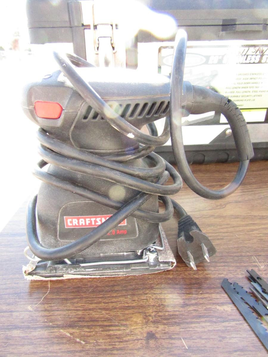 LOT 160 PALM SANDER, JIGSAW, STAINLESS STEEL TOOLBOX AND MORE