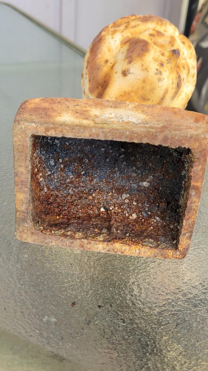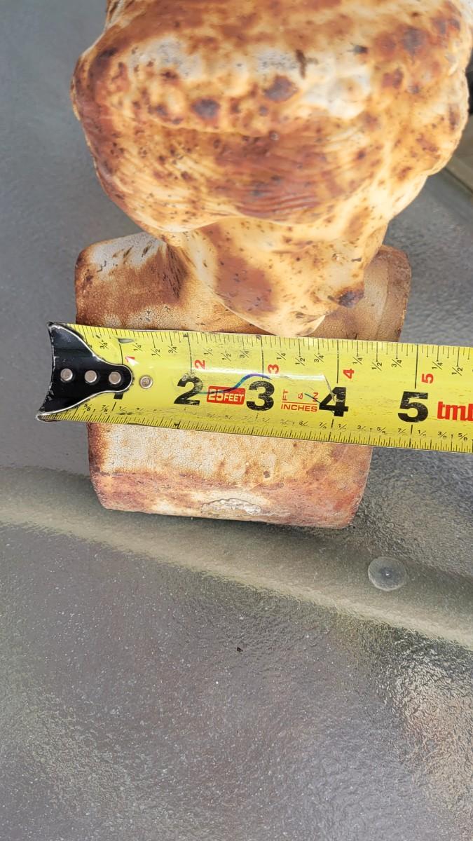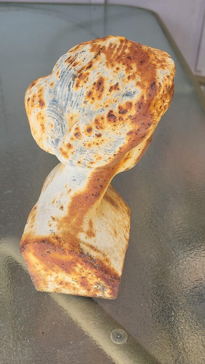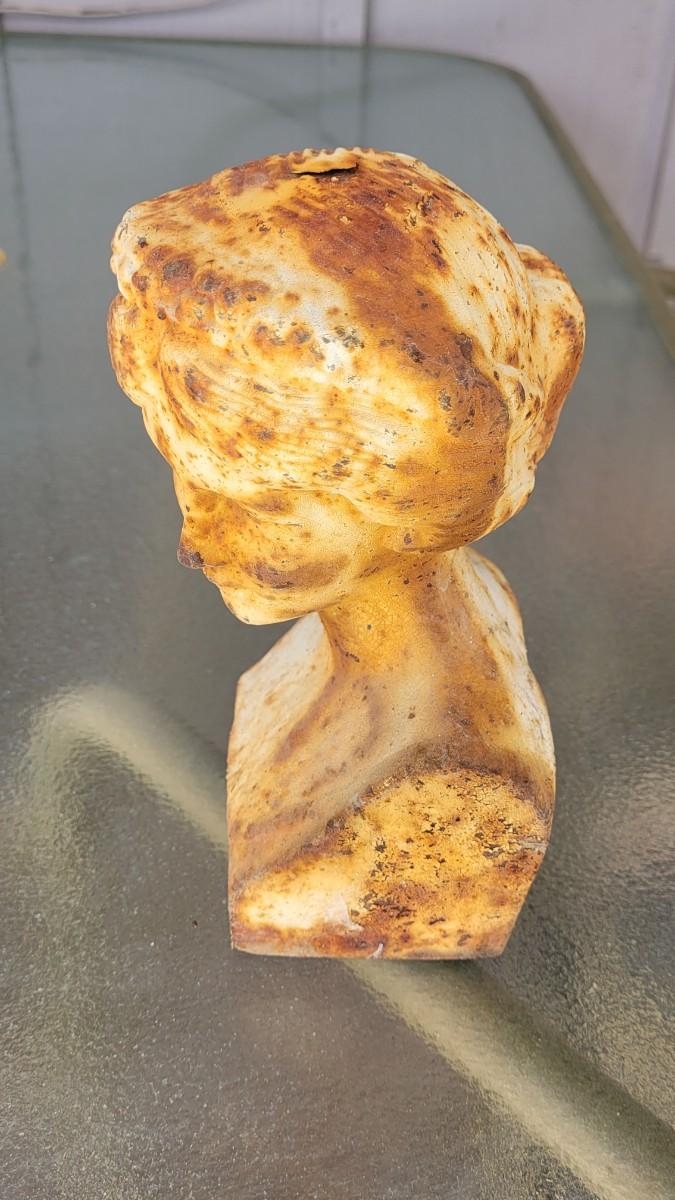 Has been displayed outdoors on a porch. Hollow on the inside, it is a heavier piece