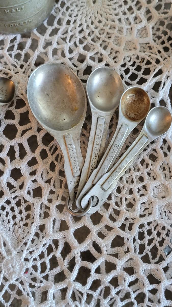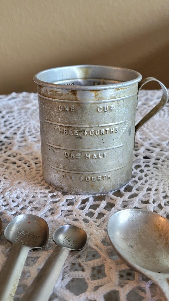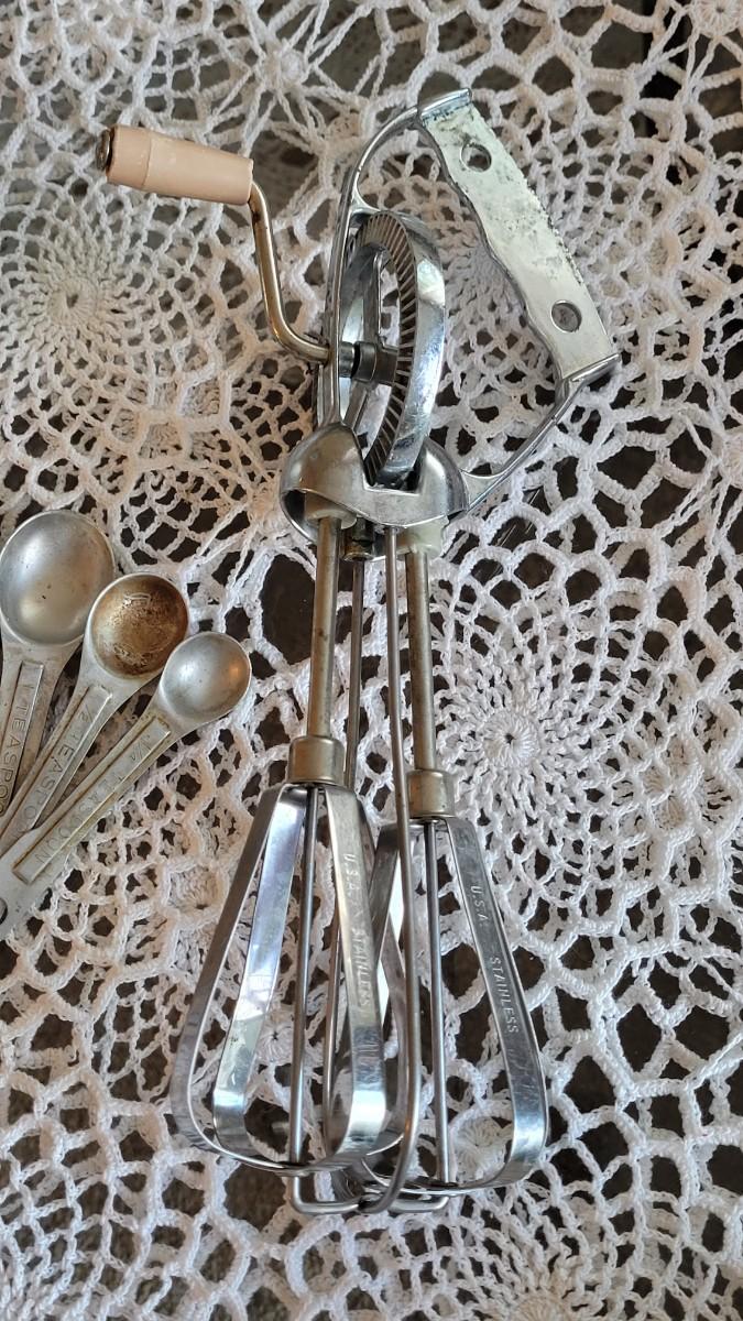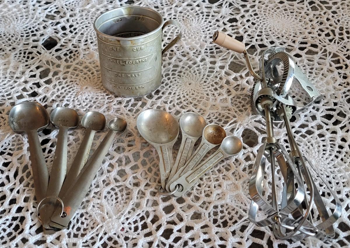 Lot 160: Vintage Measuring Spoon Sets (2), Measuring Cup and Handmixer