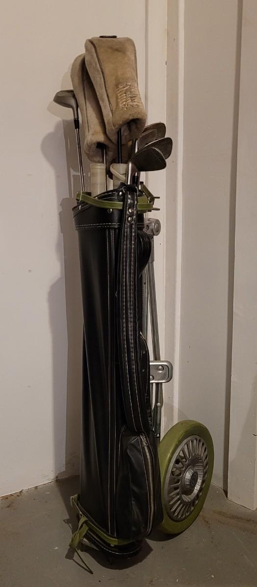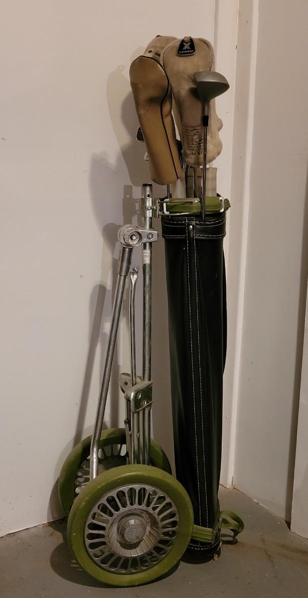 Lot 160: Vintage Golf Bag, Cart and Clubs