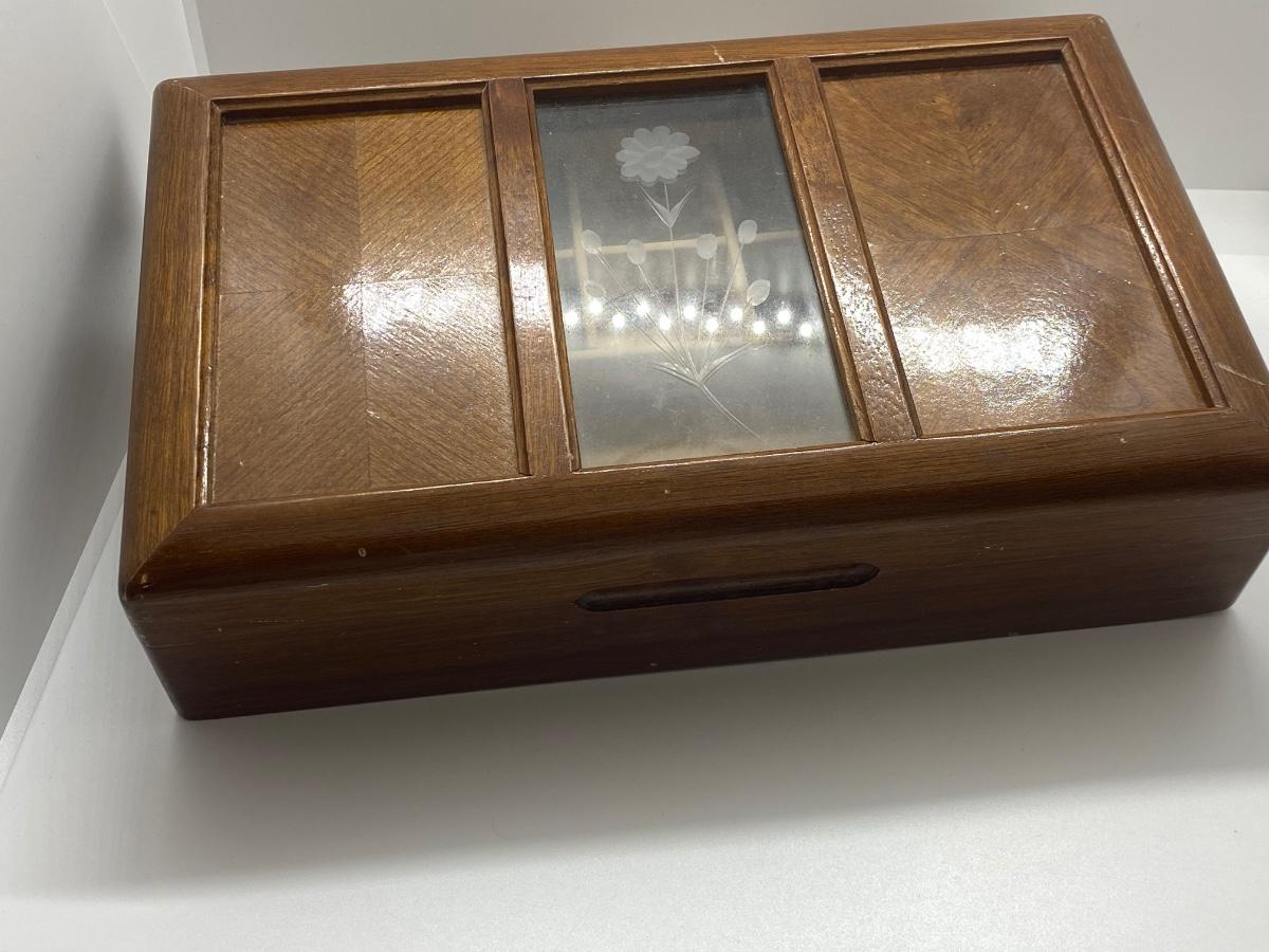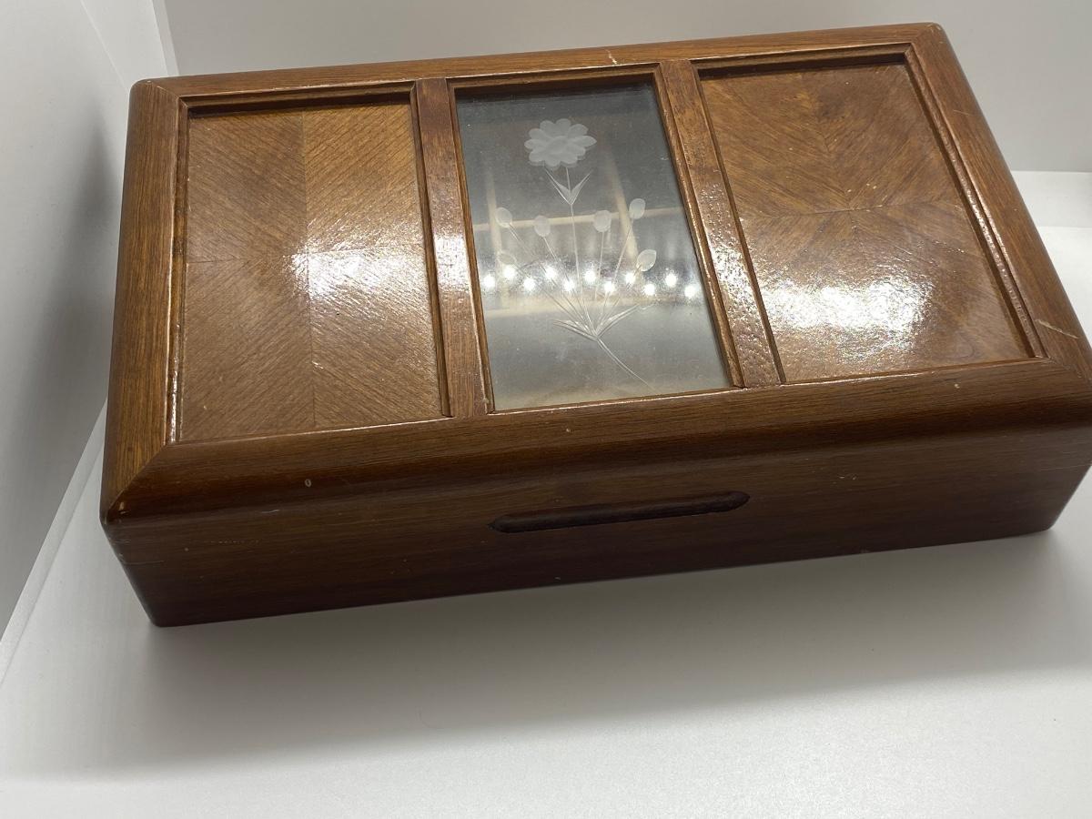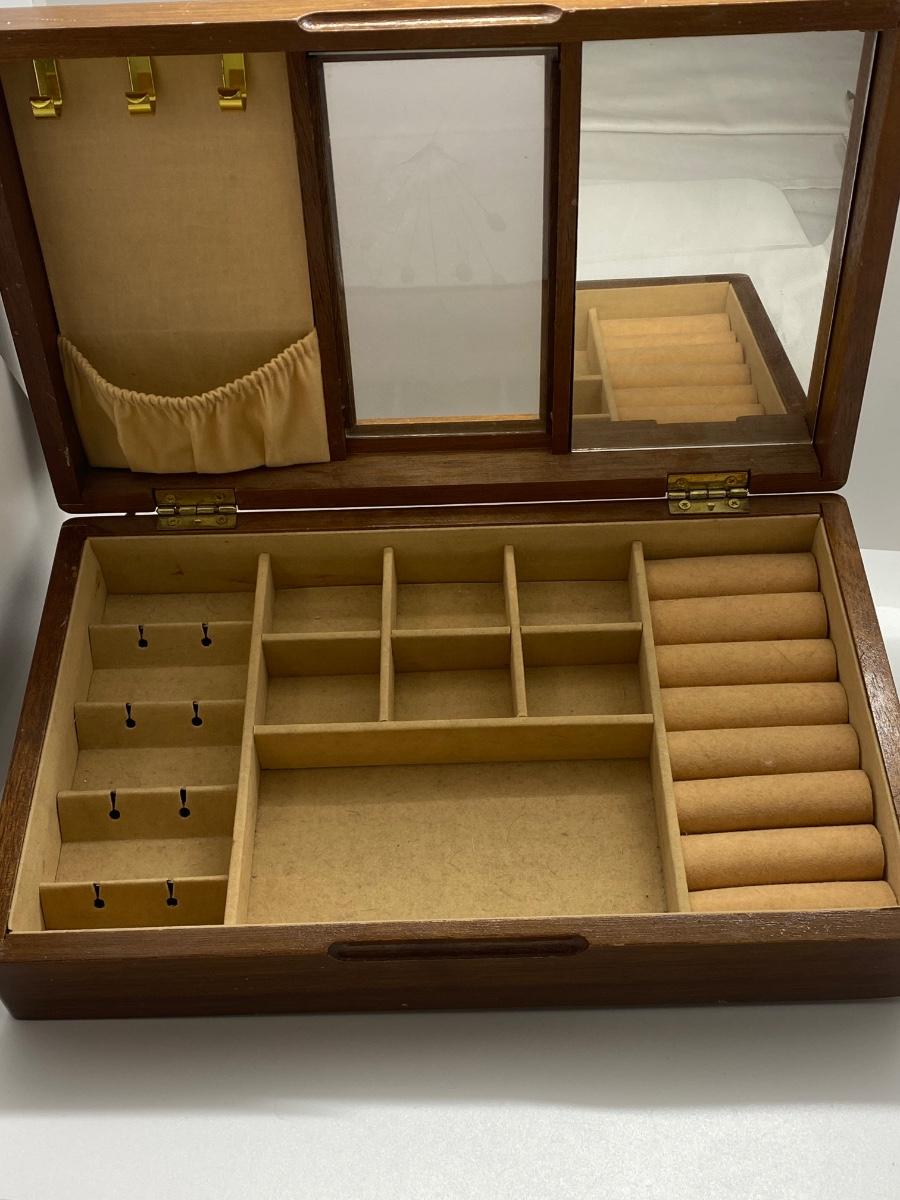 Lot 160: Wood Jewelry Box With Gold Tone Jewelry