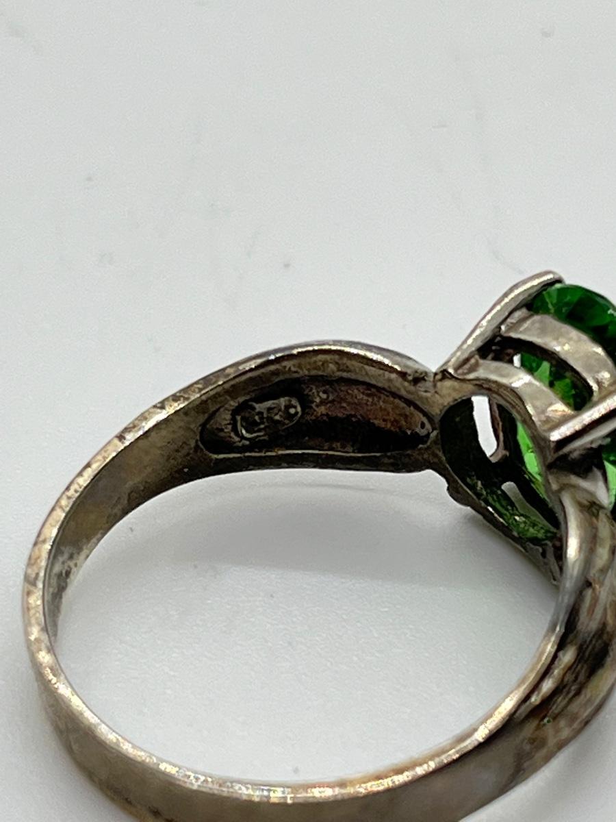LOT 160: Vintage Badavici 925 Sterling Silver Green Quartz Size 8 Ring