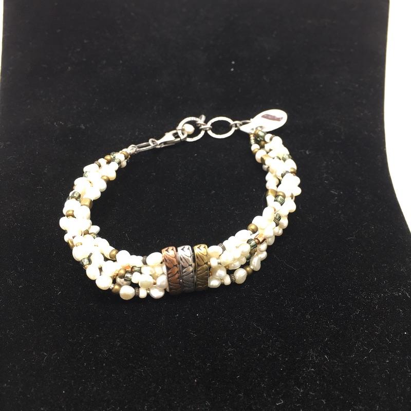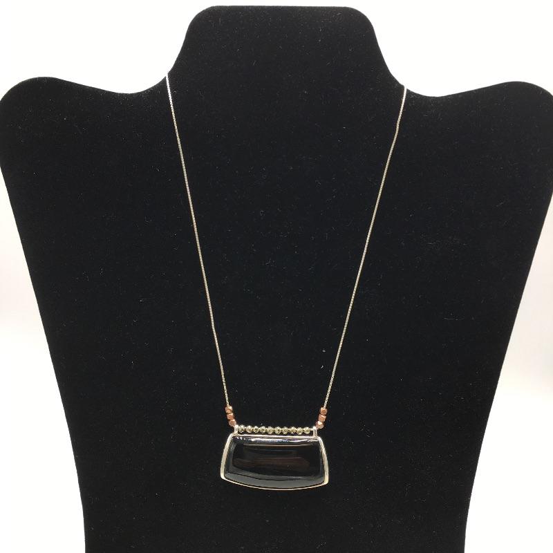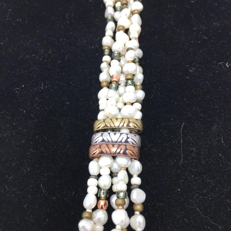 Style favors the bold with the Sable Necklace that measures 16” with a 2” extender complete with a bezel-set agate stone at the base of the piece surrounded by smaller copper and pyrite stones for a look that's sure to be unforgettable. Included in Lot is a bracelet of pearls, sterling silver, copper and brass that fits up to a 7” wrist.
