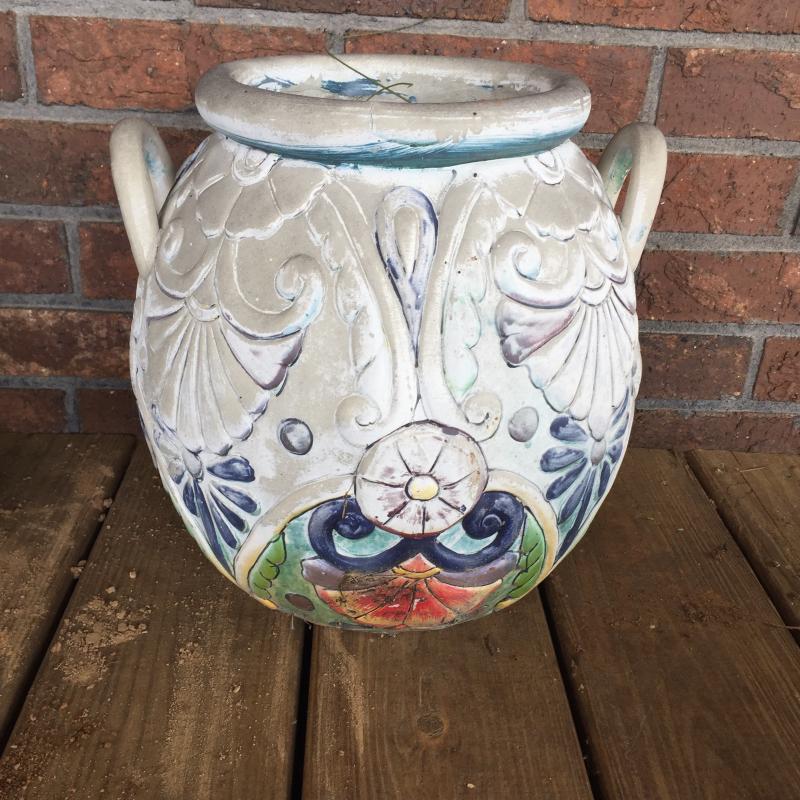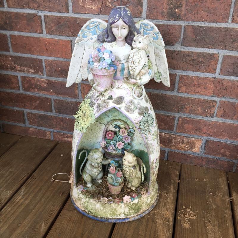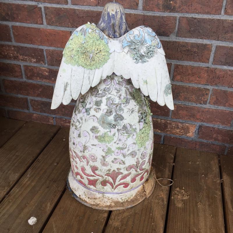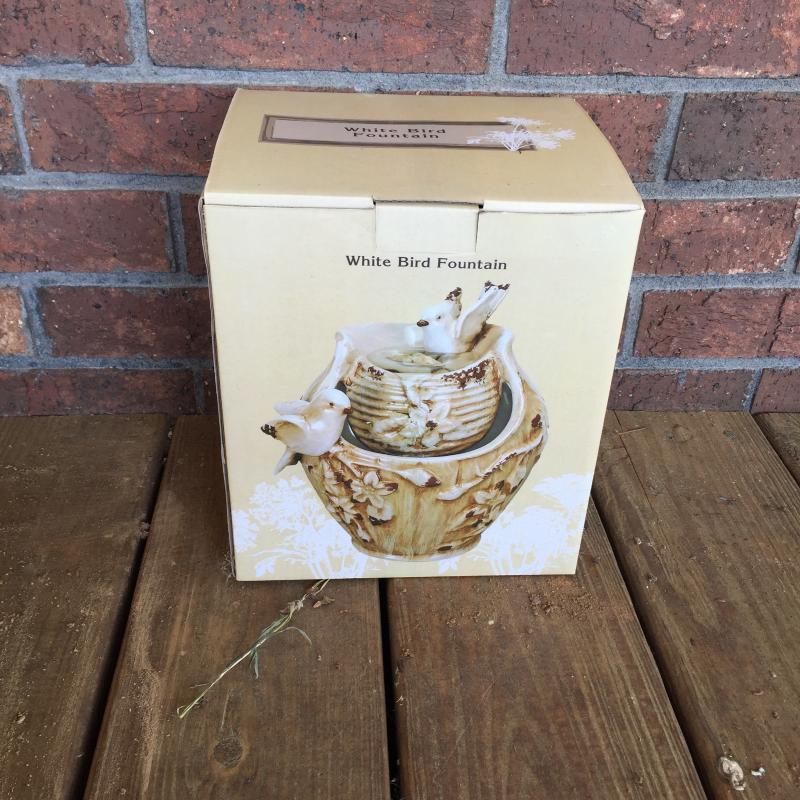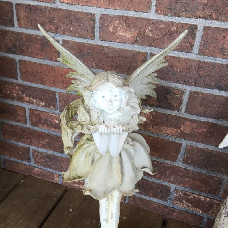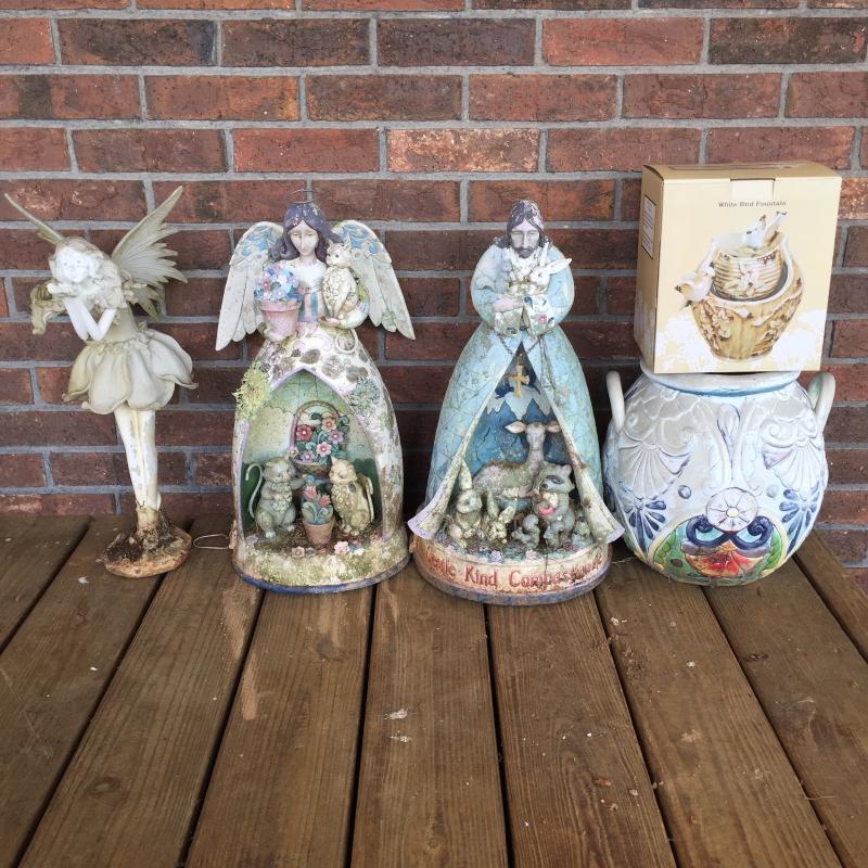 Outdoor Angels and Pot seem to be made of resin and are weathered. Indoor fountain is NIB. Angel Measures 19”.