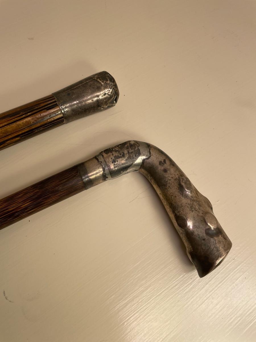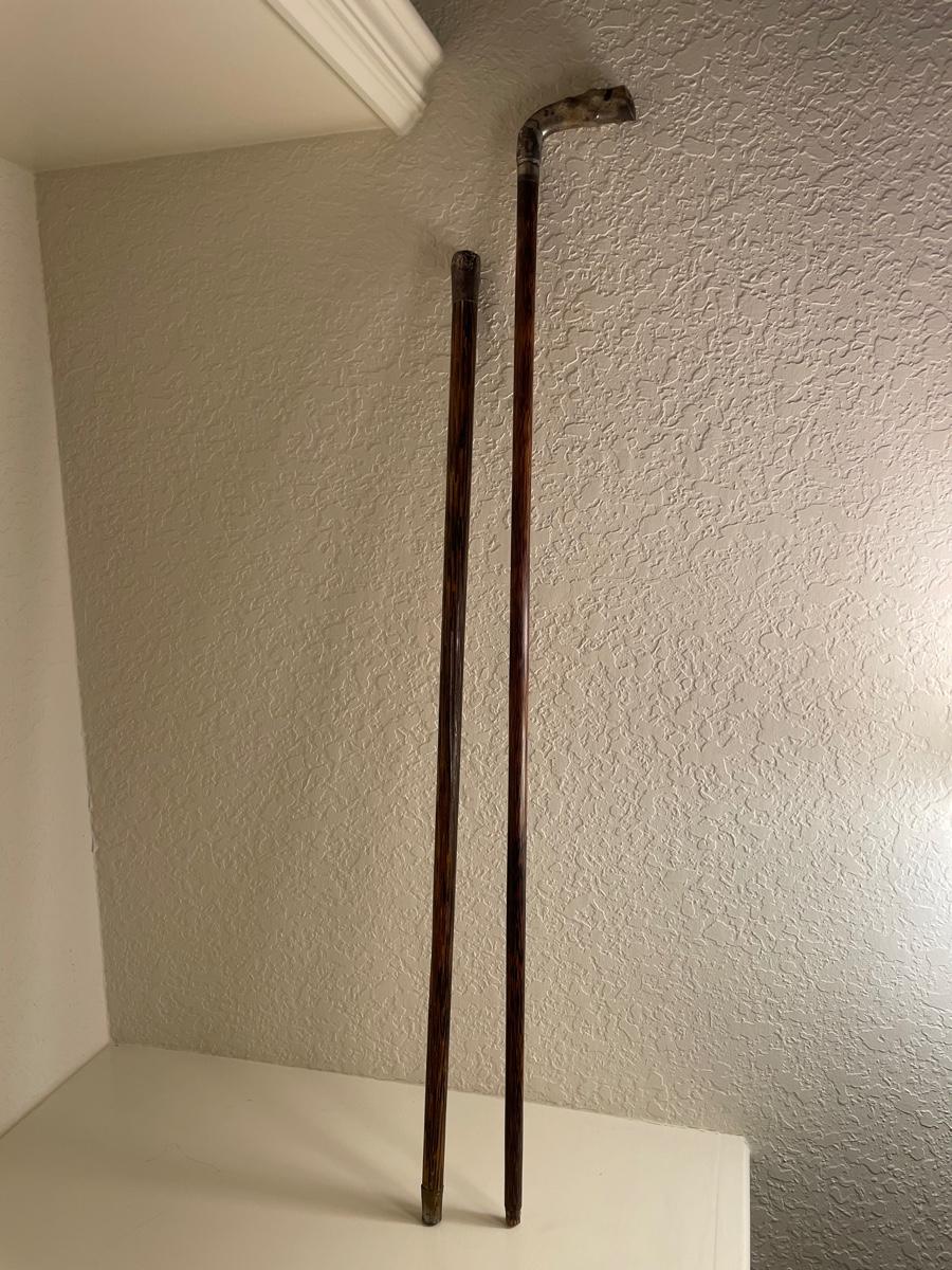 2 Antique Walking Canes (end bulb may be sterling - could not verify)