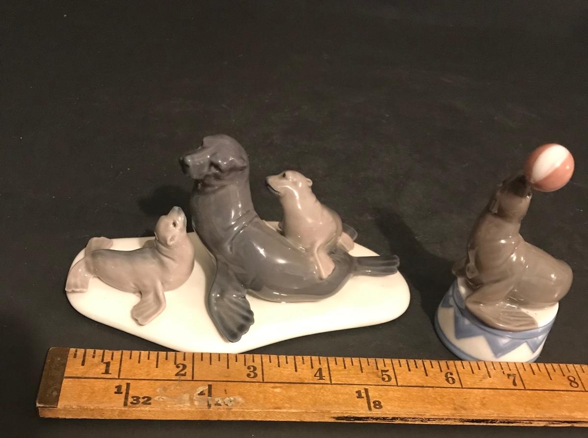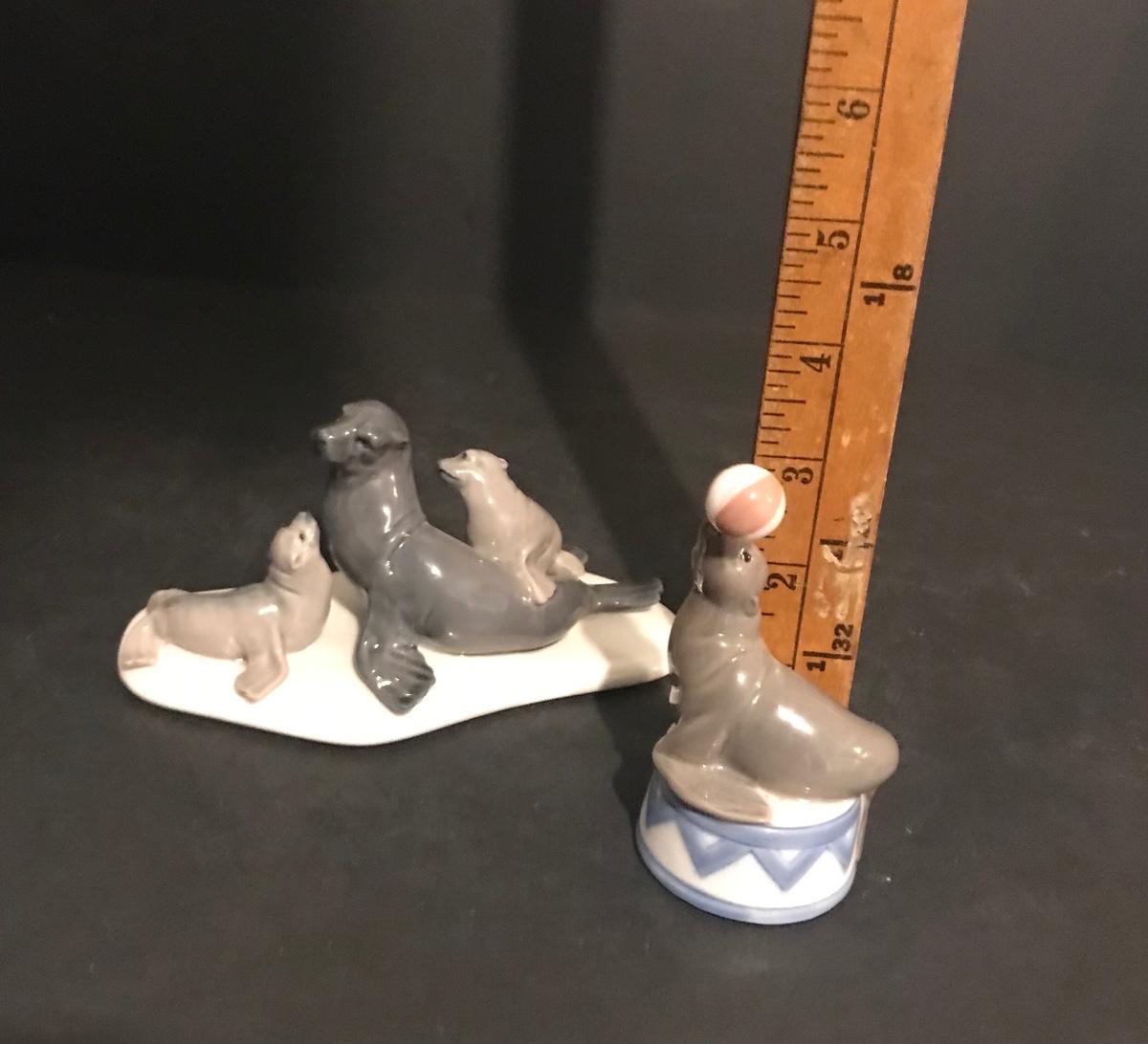 Balancing Act #5392 Mini Seal Family #5318. All Lladros are in excellent vintage condition without original boxes, except where noted. All items have been inspected and any damages or imperfections have been photographed and noted to the best of our knowledge and ability. It is the responsibility of the buyer to inspect all pictures, as they are the best representation of the items. The pictures show condition, measurements if taken, and what is included in the lot. Upon pickup, it is the responsibility of the buyer to inspect their items prior to leaving the premises. Once the items leave the premises, there will be no refunds or returns. Buyers are also responsible for bringing their own boxes and packing materials for their items. Thank you.
