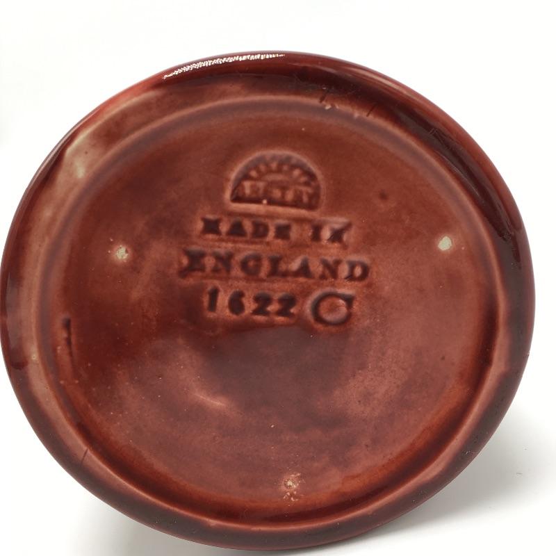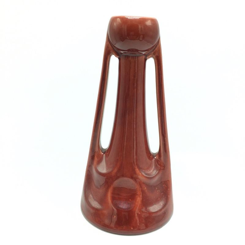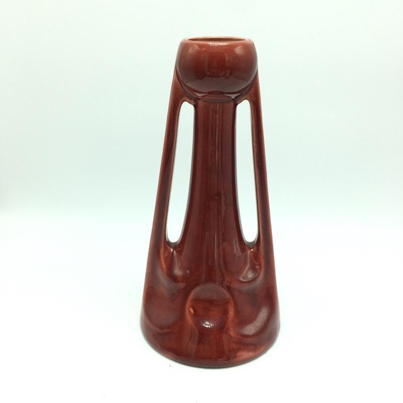 Bretby vase # 1622C with the Bretby mark and Made in England also on bottom. A lovely maroon vase that tapers up at the top. 4.75” x 9” tall.
