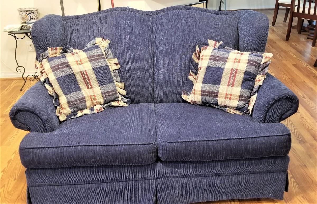 Classic Broyhill Love seat - clean and comfy. 5 feet across, 35" deep, 3 feet tall. Finished all the way around.