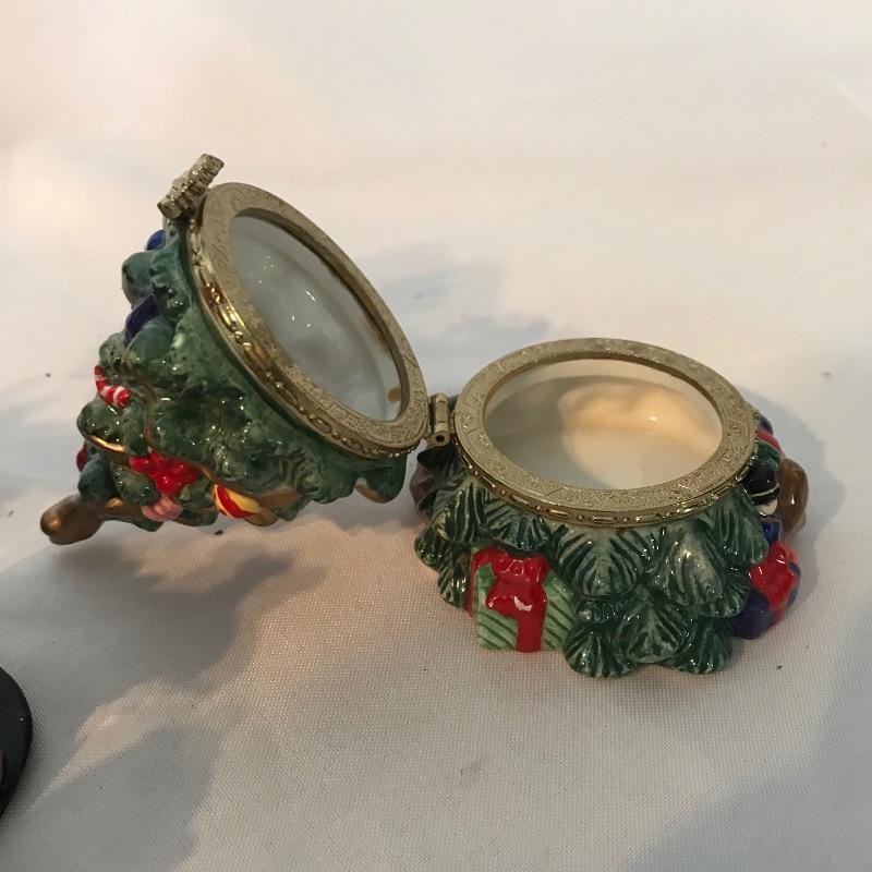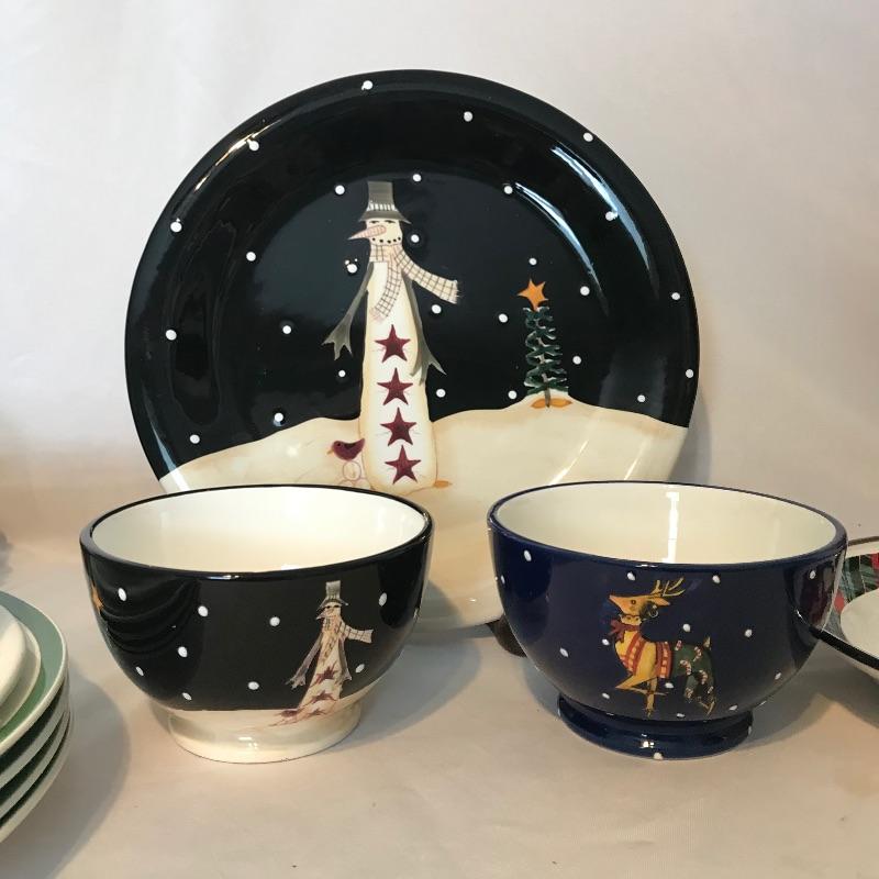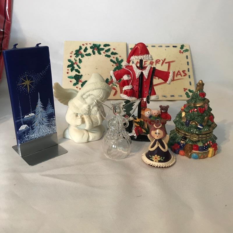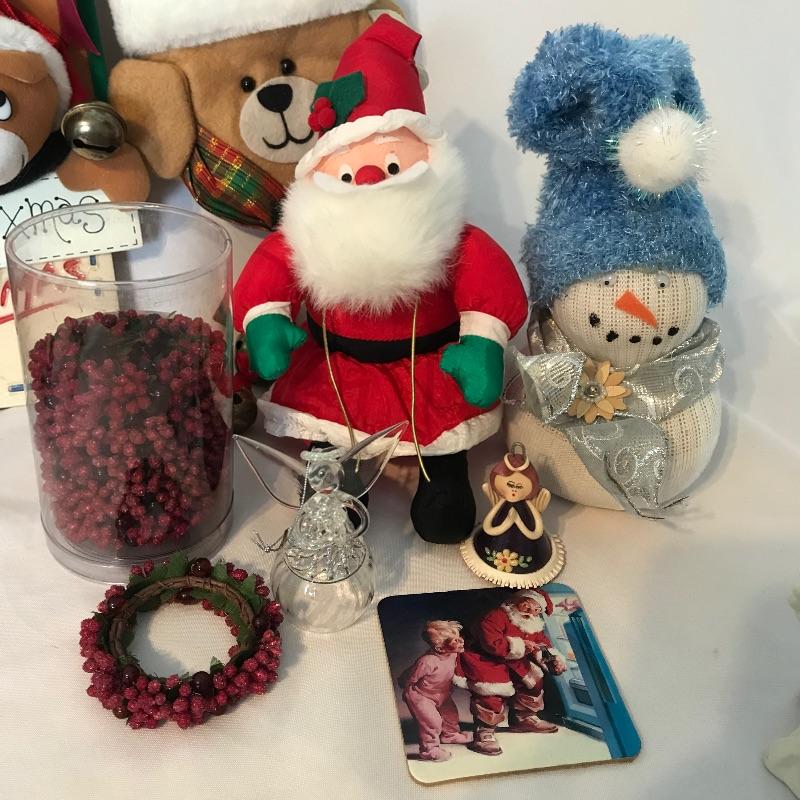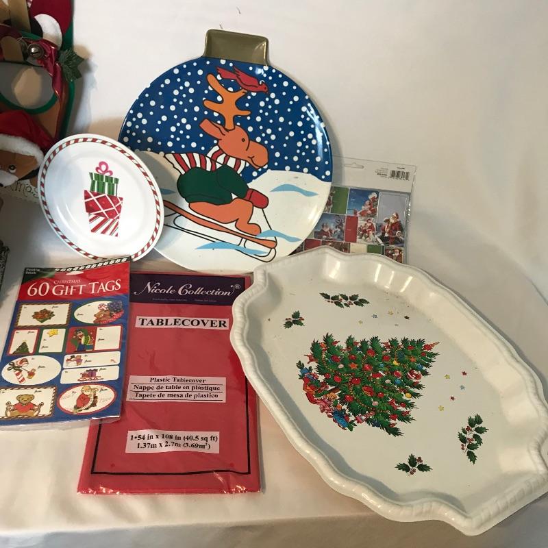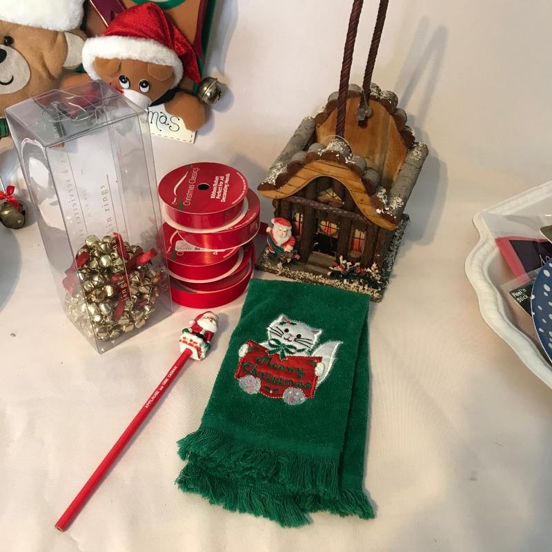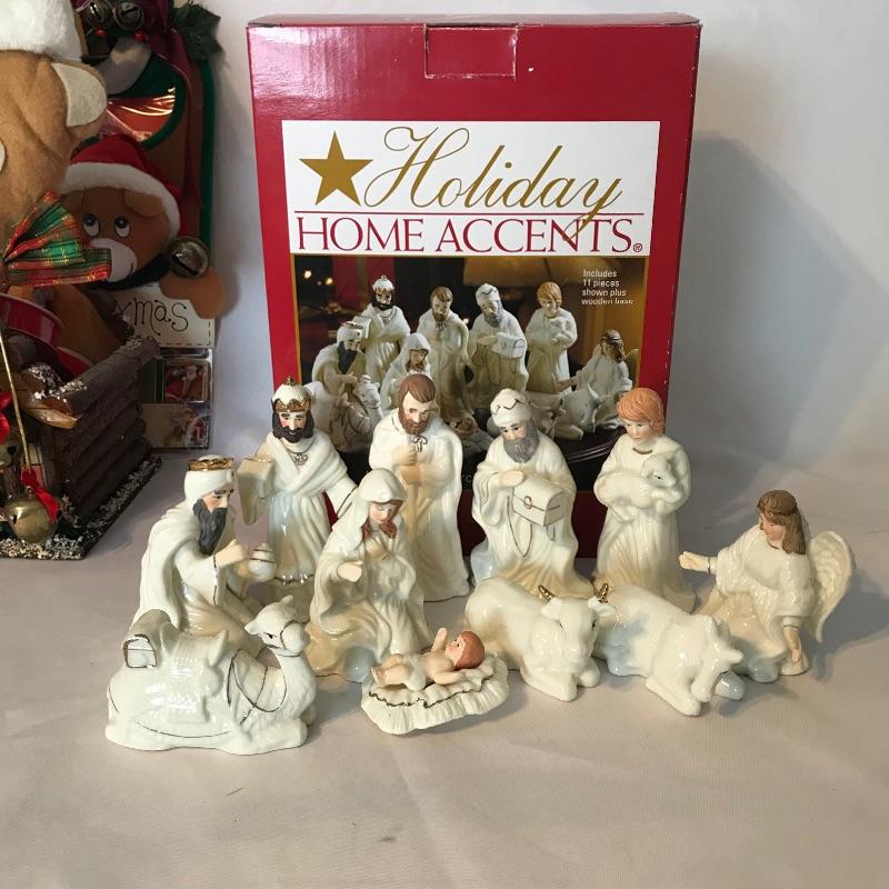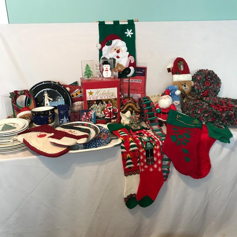 It’s never too early to think about Holiday Decorations! From Santas and ladders to Spode dinnerware, this lot has a nice diverse selection to add that holiday cheer to your season! The Holiday Home Accents nativity scene is in great shape, but missing the wood stand stated on box. This lot also features a cute oven mit set, jingle bell doorknob hangers, Pfaltzgraff bowl, candle holders and more! The table wreath appears to be handmade and needs some glue for the candle holder, the Spode set has some chips in the green border. The three plates photographed with the table cover are plastic and perfect to leave at your next holiday party covered in sweets. The table wreath is about 18”d. See photos for entire lot inventory. Local pick up only.
