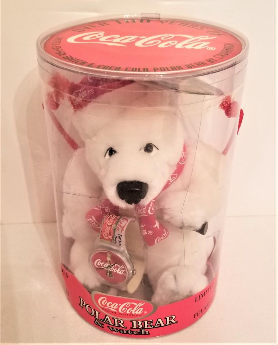 This collectible limited edition Coca Cola bear was made in 1999 - has watch - never removed from packaging. 8" tall.
