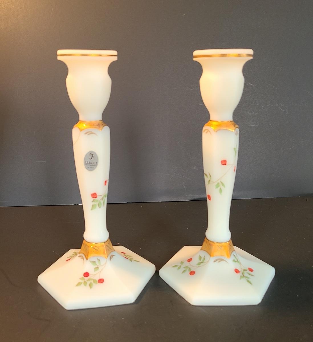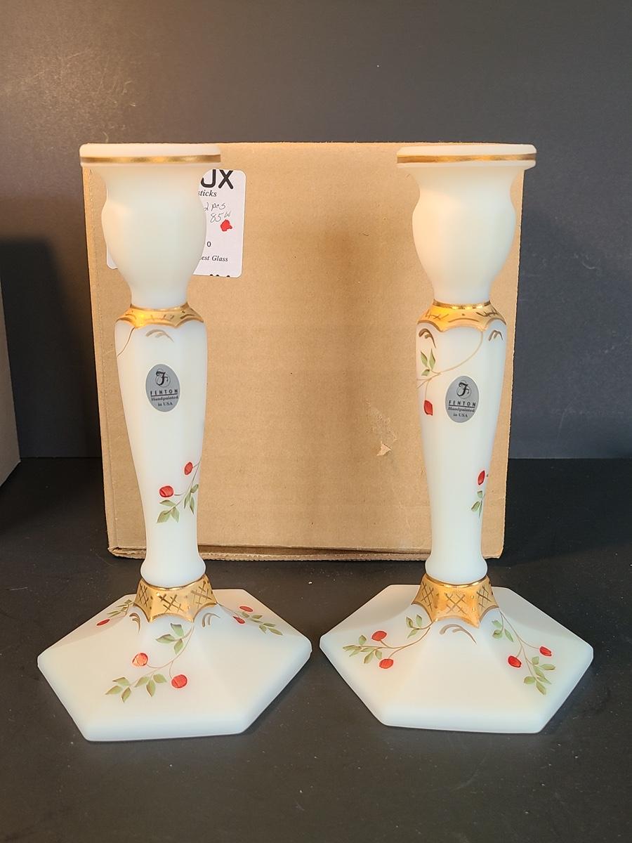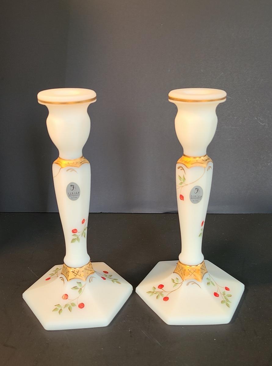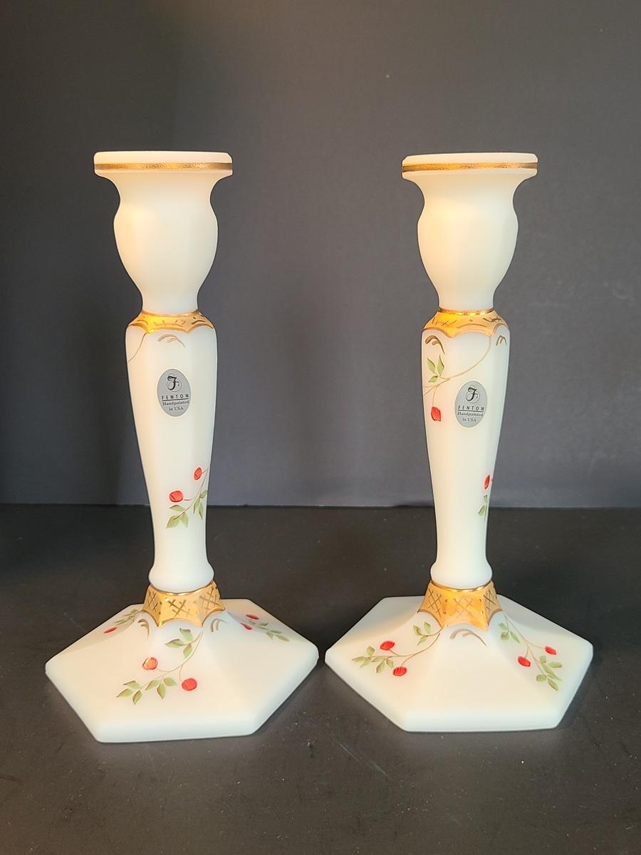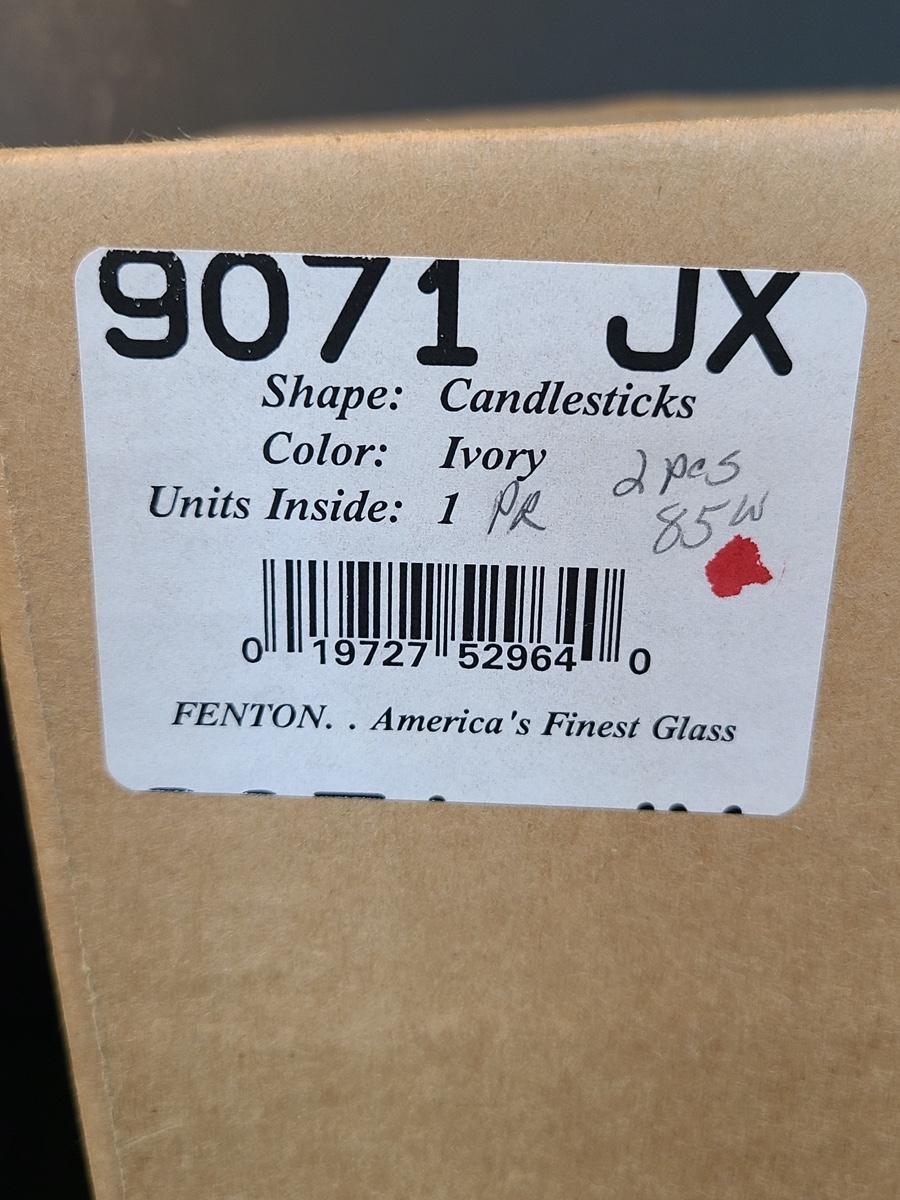 Lot 160: Fenton Elegant Ivory Candlesticks