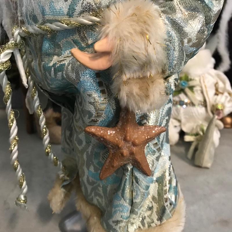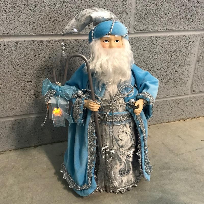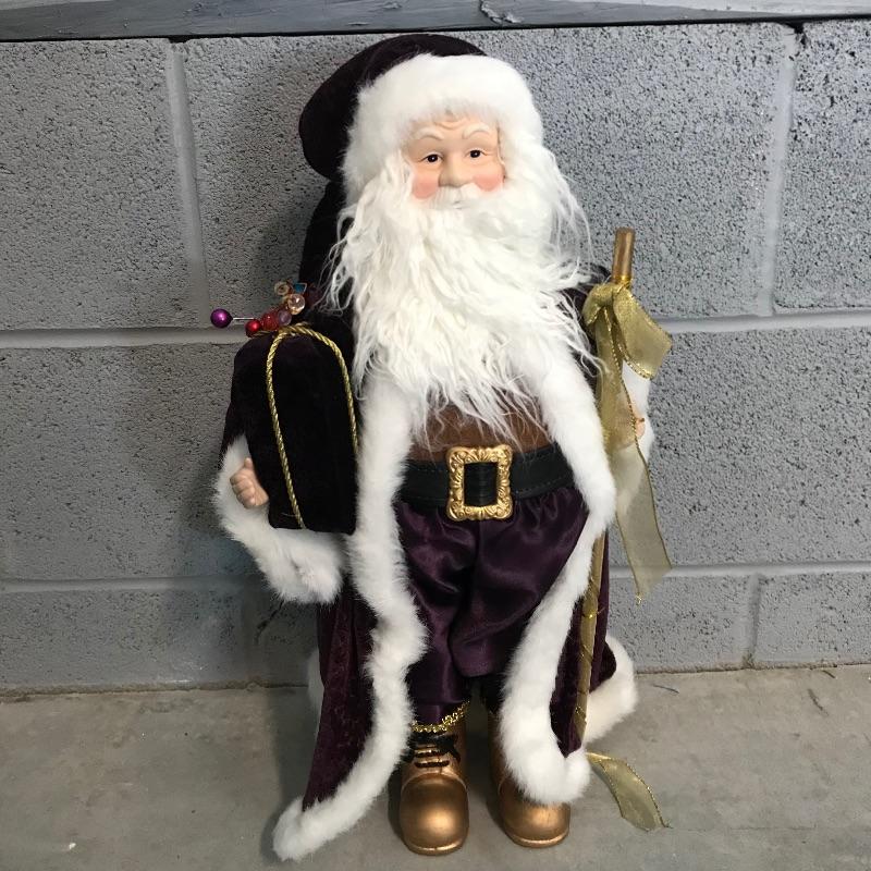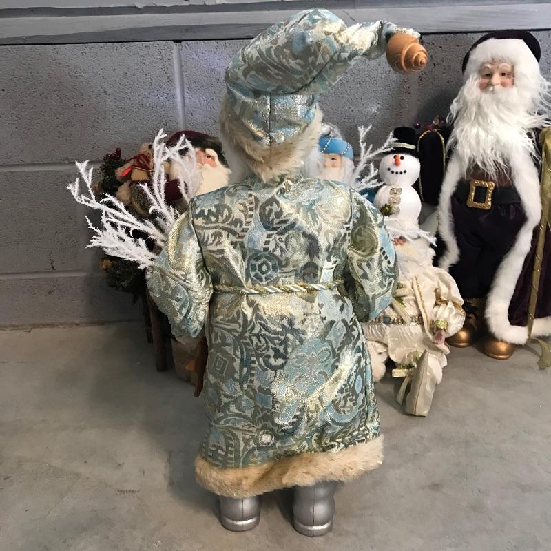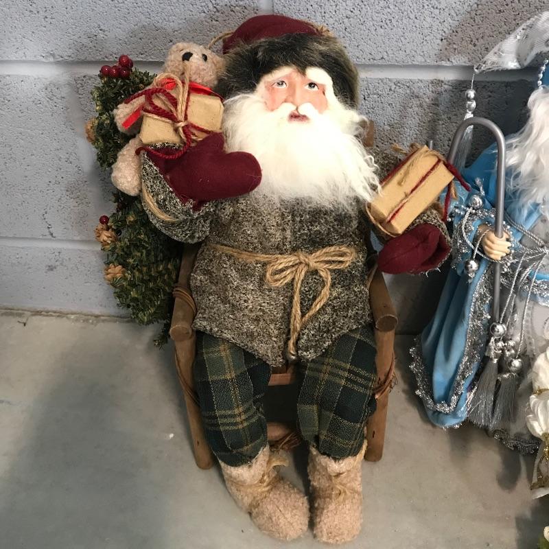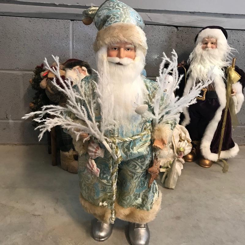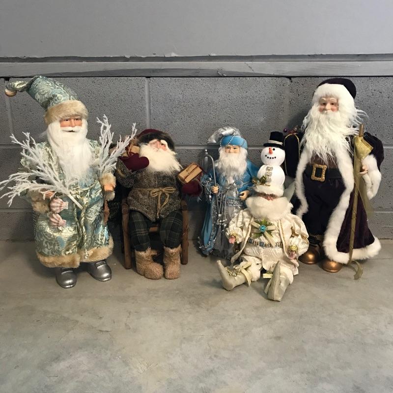 A superb festive collection of dolls here that includes Father Christmas, Mr. Claus, Jolly Old Elf- any way you call it, we’ve got five of him with your name on it! This lot has a Sea Santa, an icy Father Winter, a cozy seated Santa, a posing silly snowman Santa and a royal plum Father Christmas. The seated Santa is fixed in his chair which is nice to see him take a break for once! The baby blue father winter has a lantern that lights making him that little bit more special. Both the plum Santa and the seashell Santa appear to have porcelain faces and hands, plum Santa even appears to have porcelain boots. Seashell Santa stands the tallest with his hat reaching 21”. See photos. Shipping available.