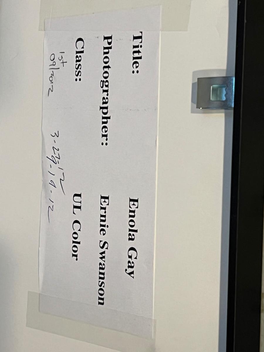Framed Ernie Swanson “Enola Gay” photograph measures 16 1/2 inches tall and 20 3/4 inches wide