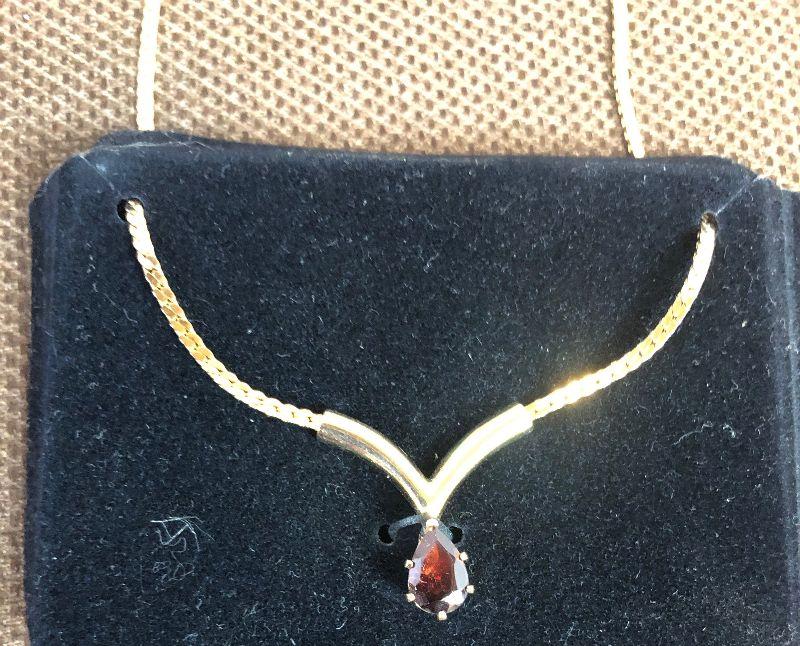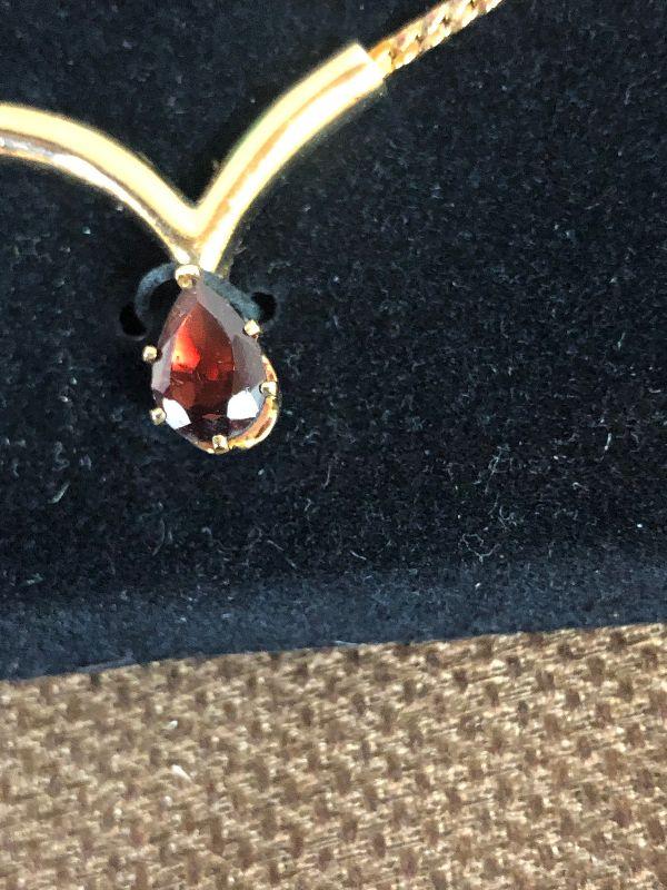 Lot # 160 Garnet on a gold tone chain 'ladies Costume Jewelry