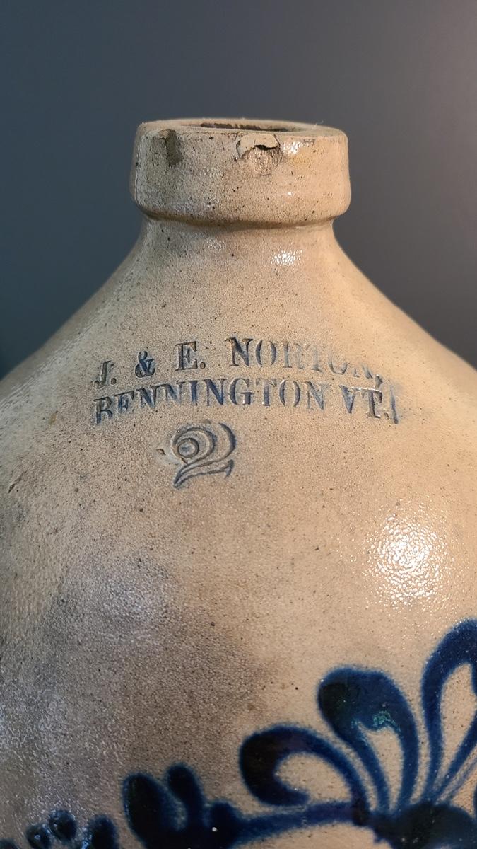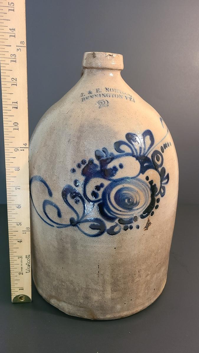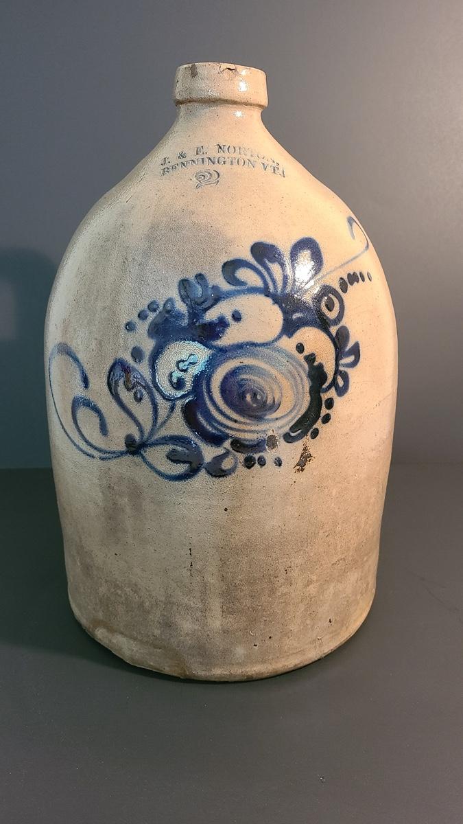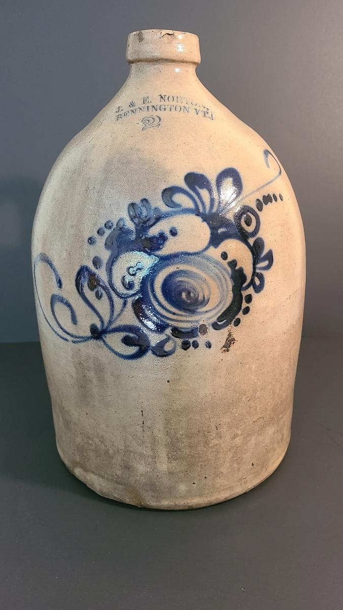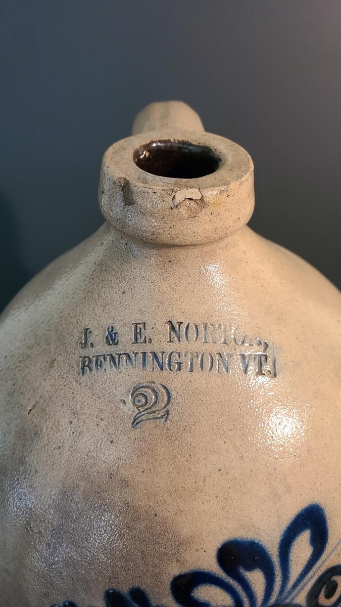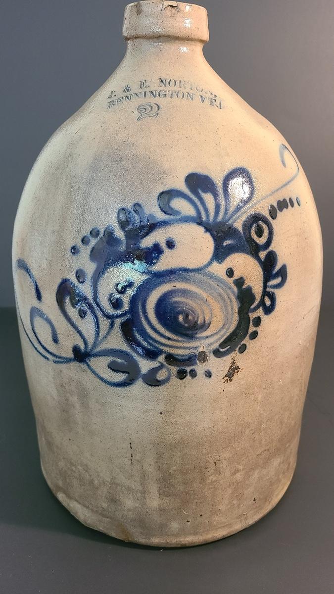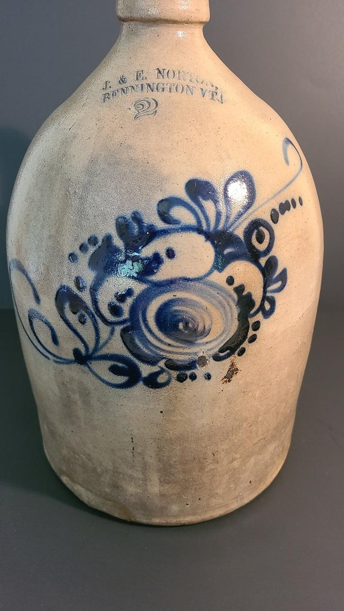 Lot 160: J & E Norton Bennington Vermont #2 Stoneware Jug with Cobalt Floral Design