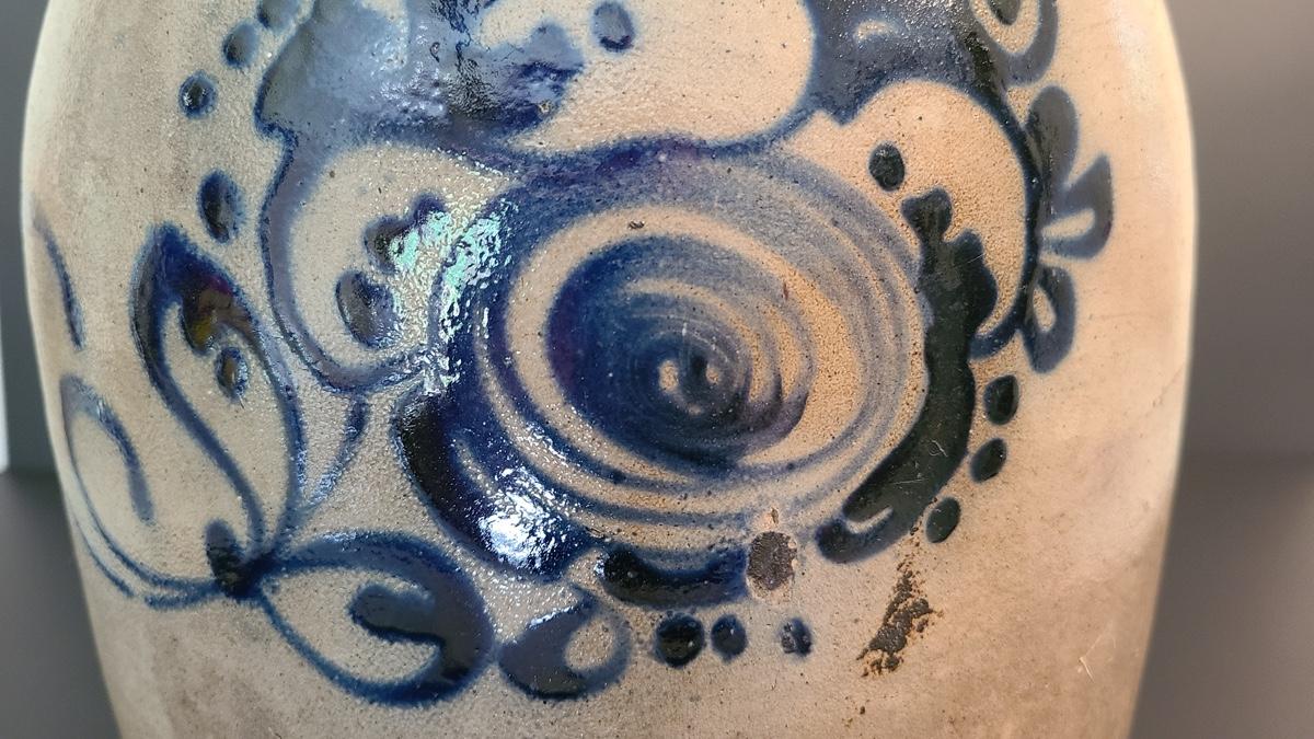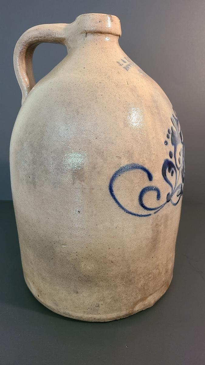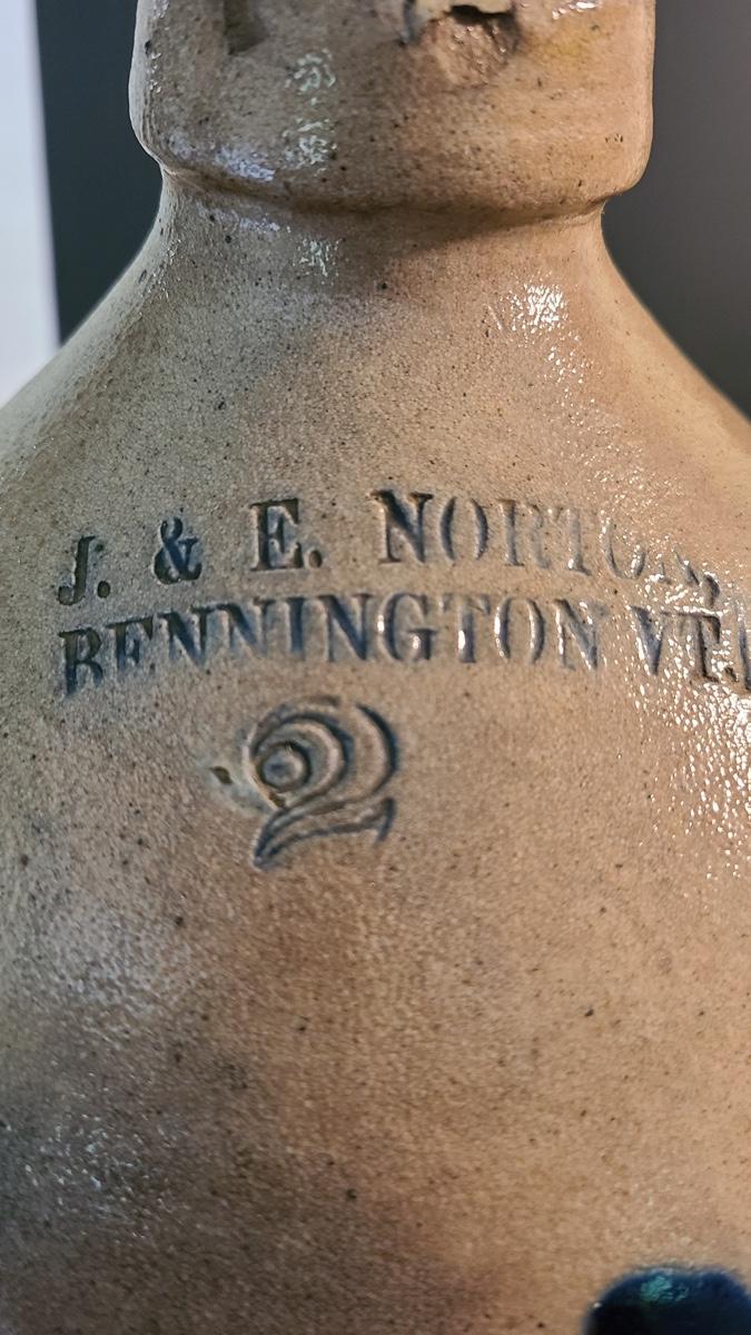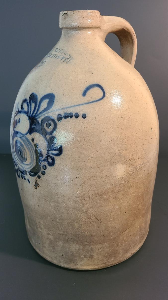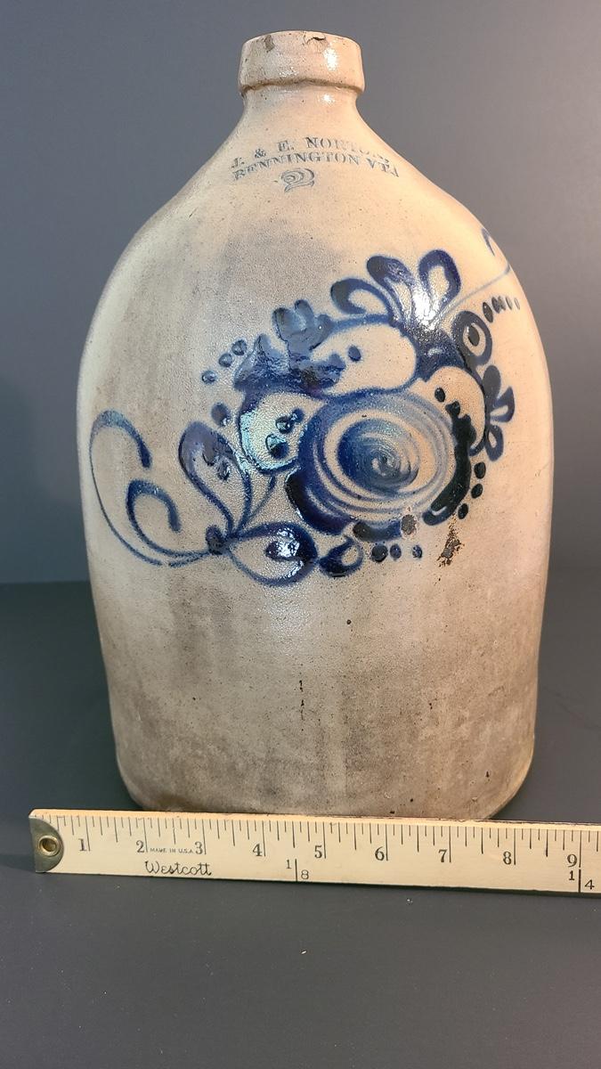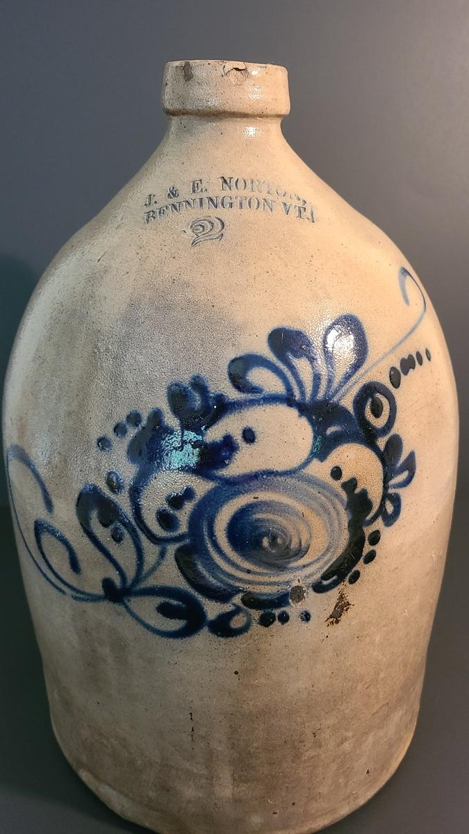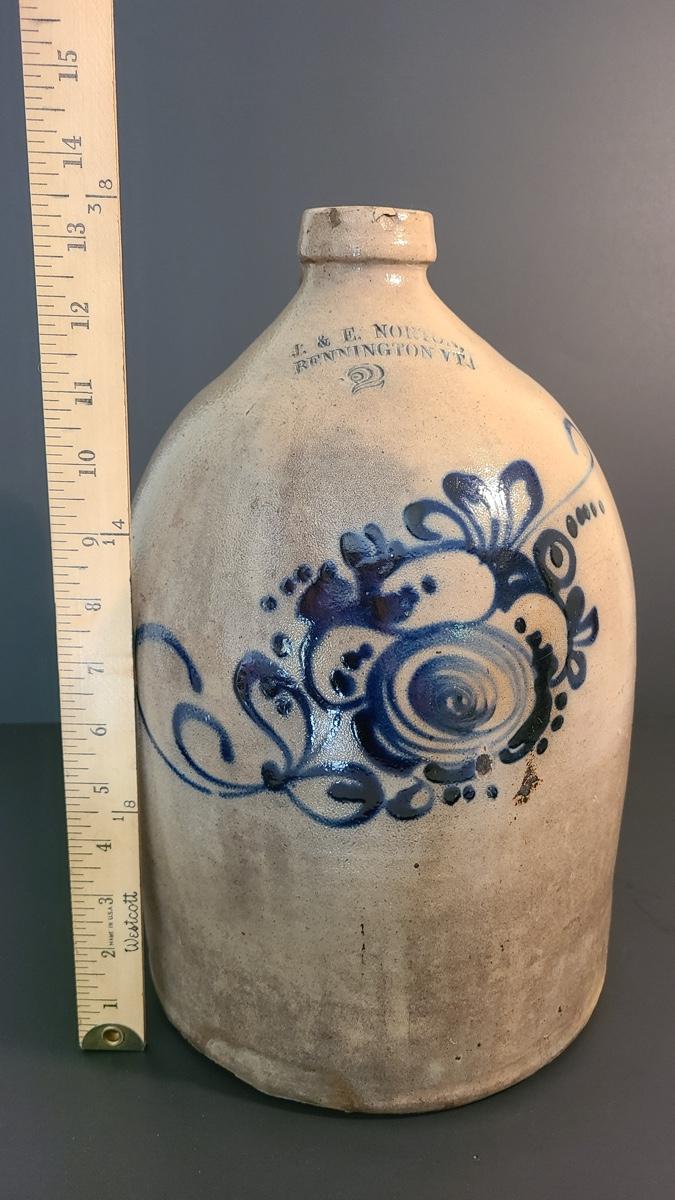 Lot 160: J & E Norton Bennington Vermont #2 Stoneware Jug with Cobalt Floral Design