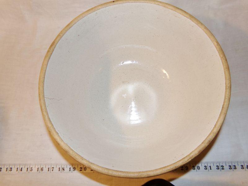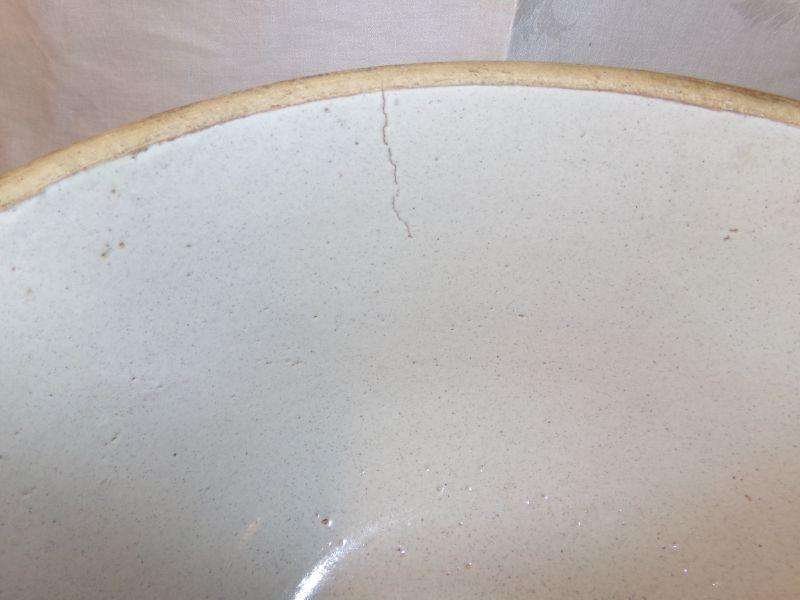 THERE ARE 2 LINES ON BOWL (SEE PICS) THAT COULD BE CRACKS BUT THEY LOOK MORE LIKE FACTORY DEFECTS REGARDLESS THE LINES ARE ONLY ON 1 SIDE OF BOWL AND DON'T GO THROUGH TO THE OTHER SIDE