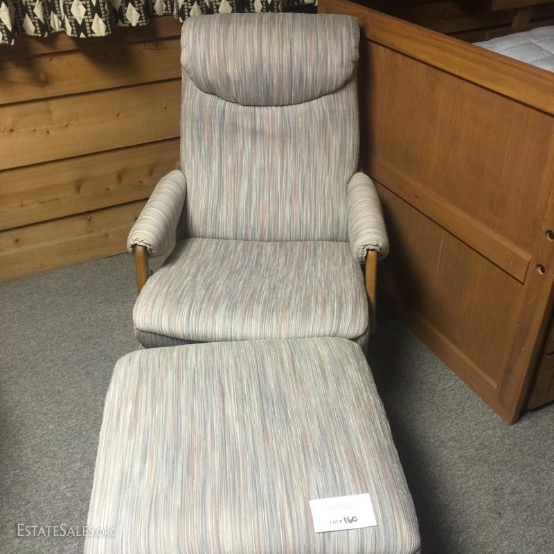 LOT 160  - Mid Century High back recliner and ottoman/footstool