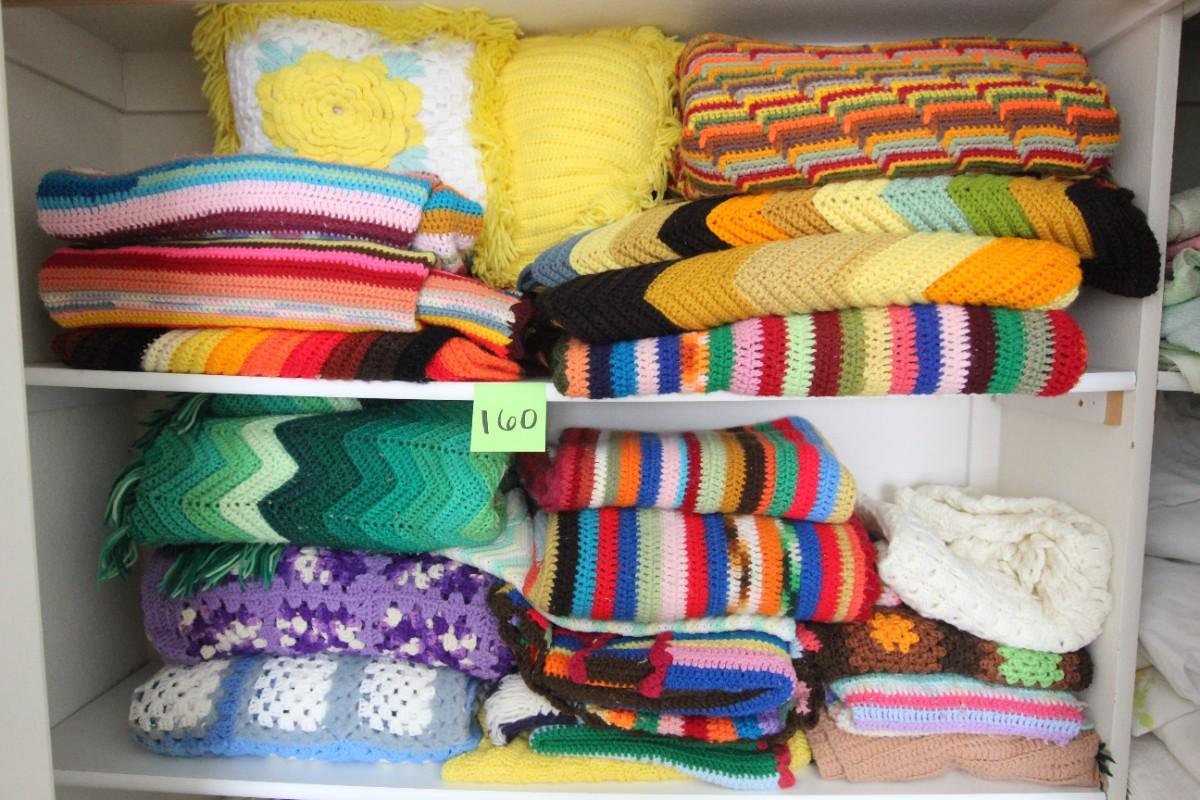 Lot 160 Multi Color Mid Century Crocheted Throws & Blankets