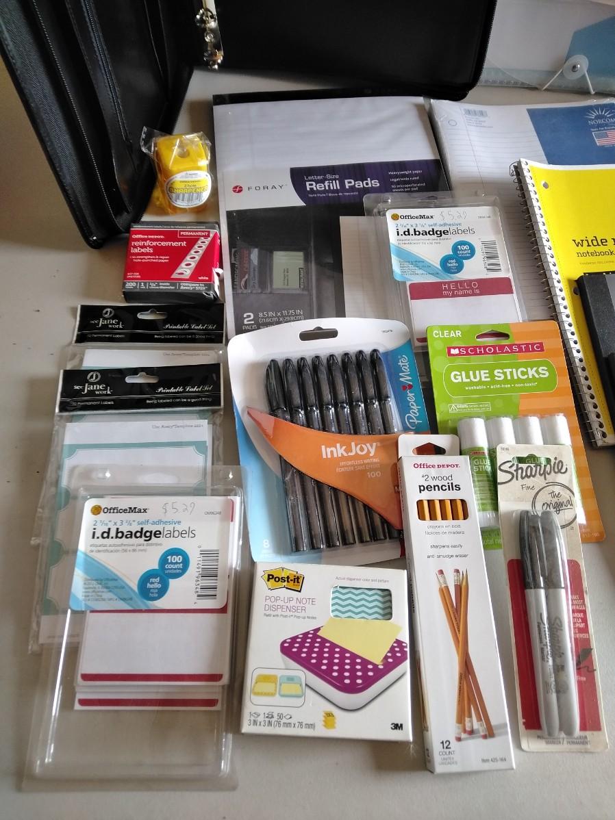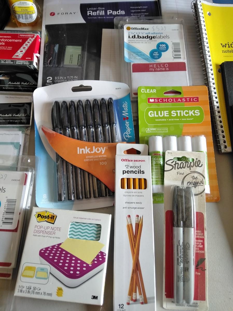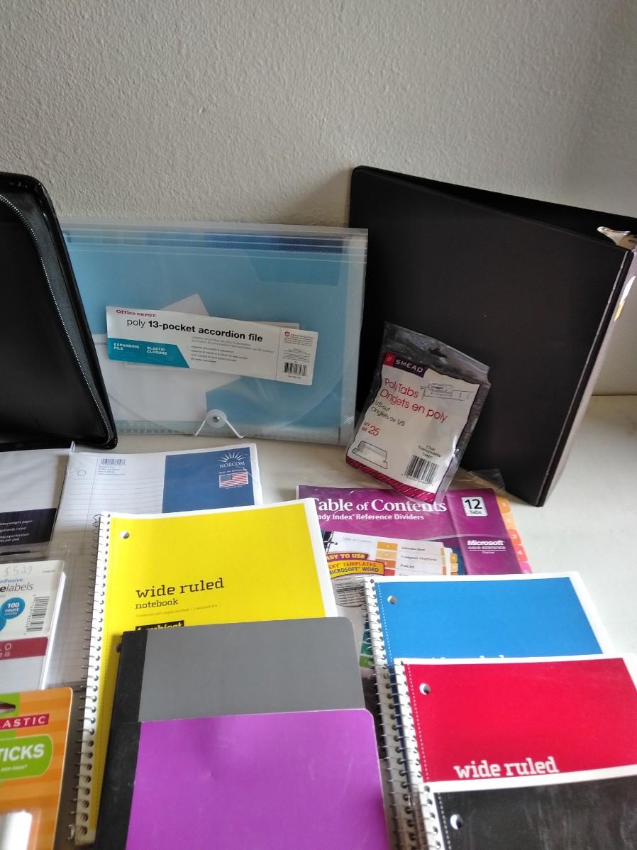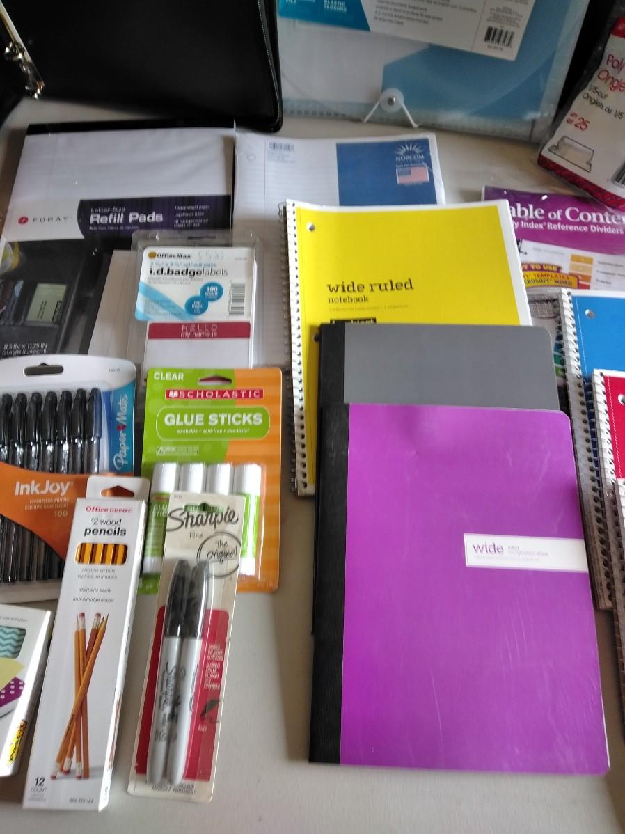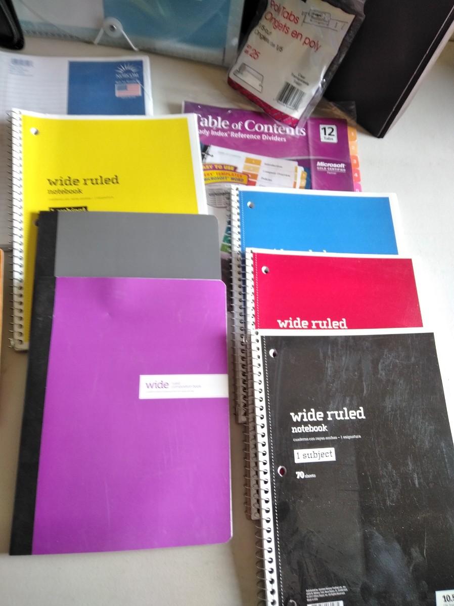 SPIRAL NOTEBOOKS, PENS, PENCILS, MARKERS, GLUE STICKS, FILE FOLDER, AND MORE