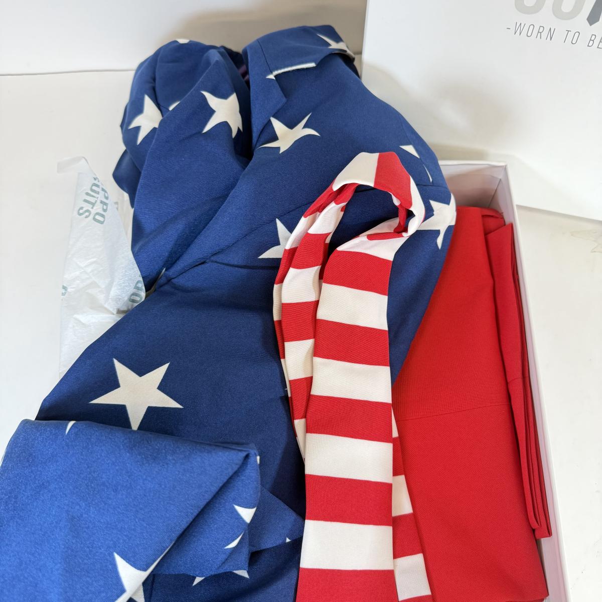 LOT 160: OppoSuits American Flag Suit in box, US Flag in Box & 13 Colonies Spoon Set
